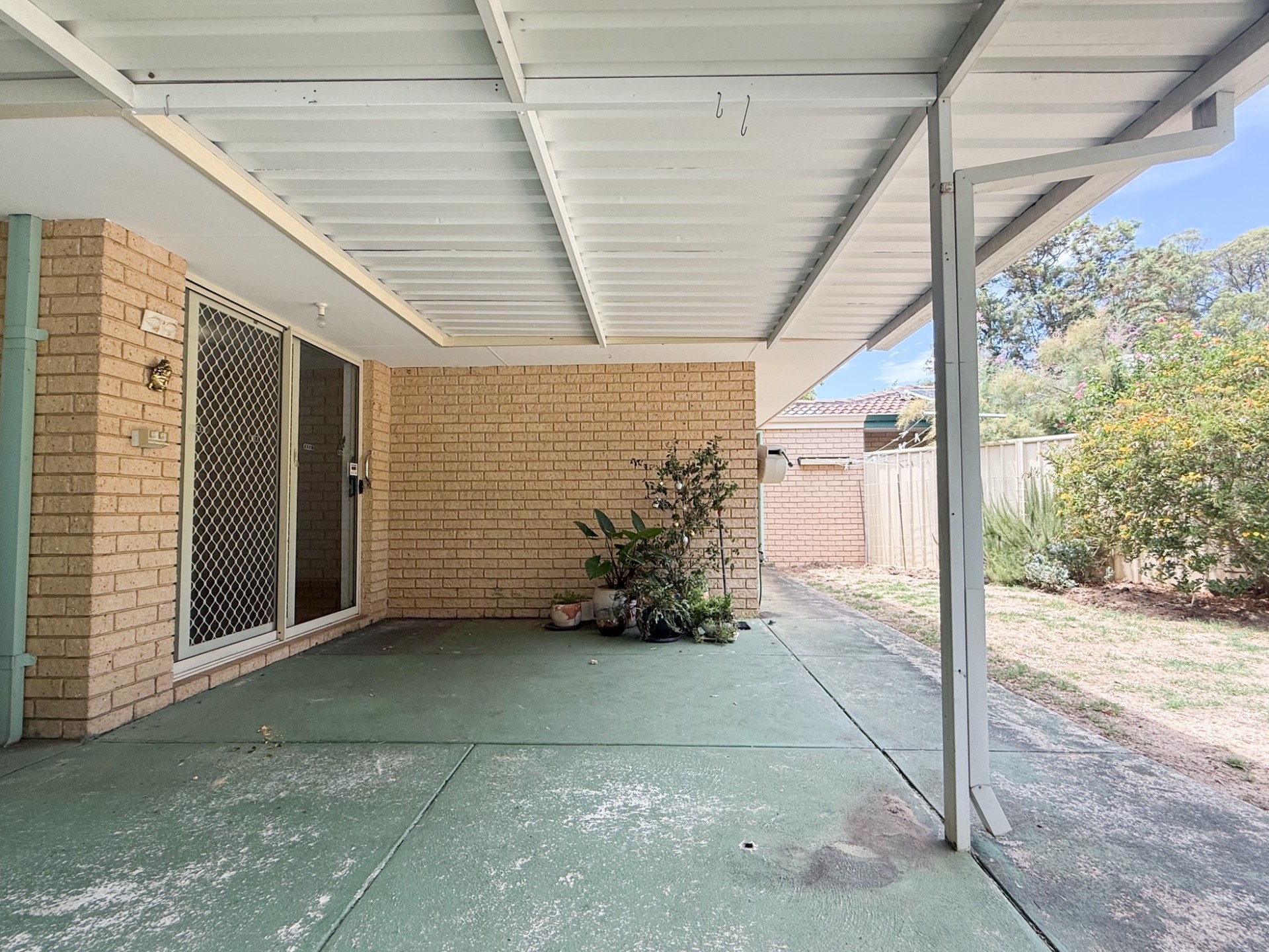 The spacious patio overlooks the neat and tidy garden beds, just waiting for a green thumb to nurture it, and plenty of space for a dog to happily run around.