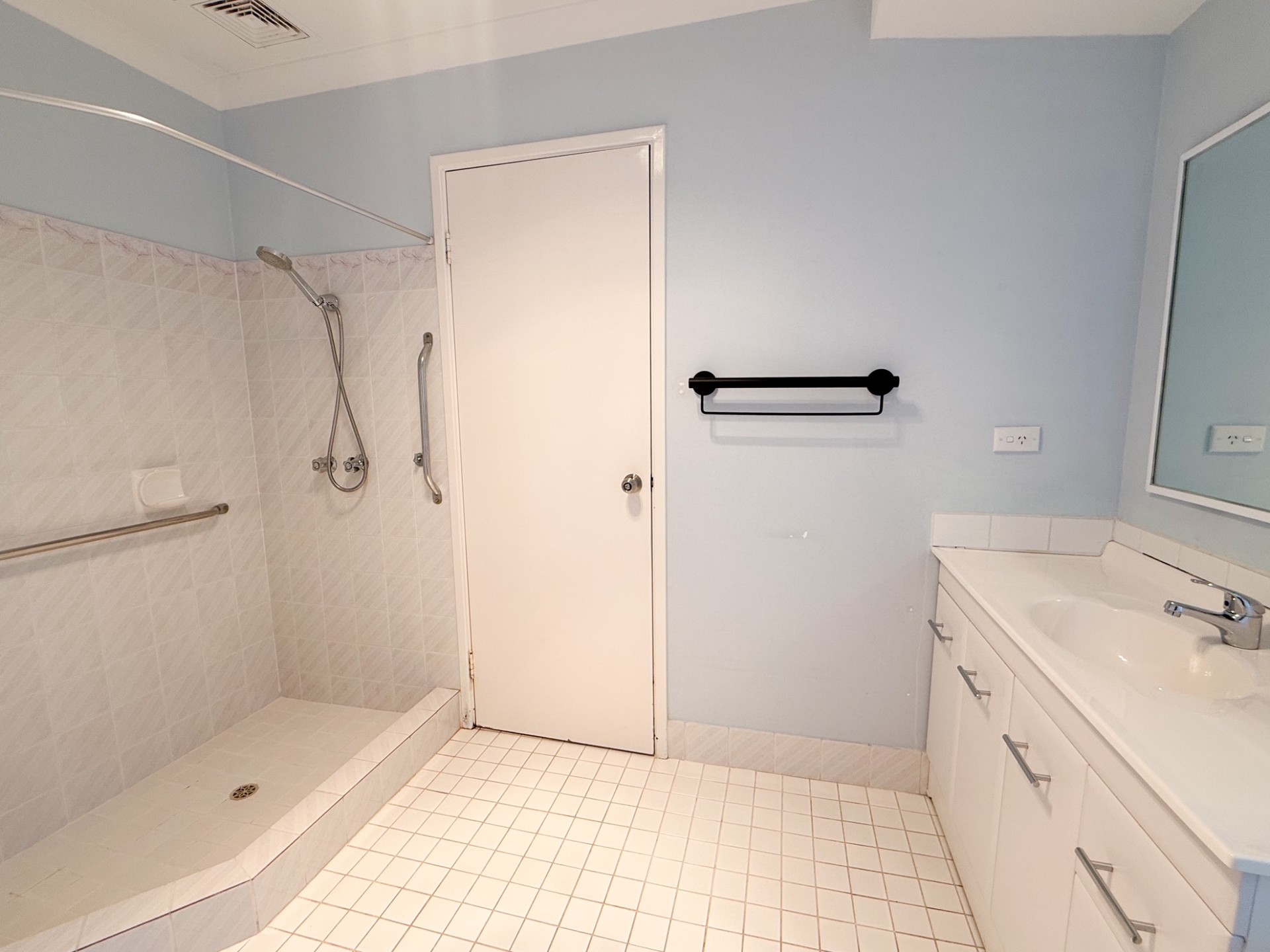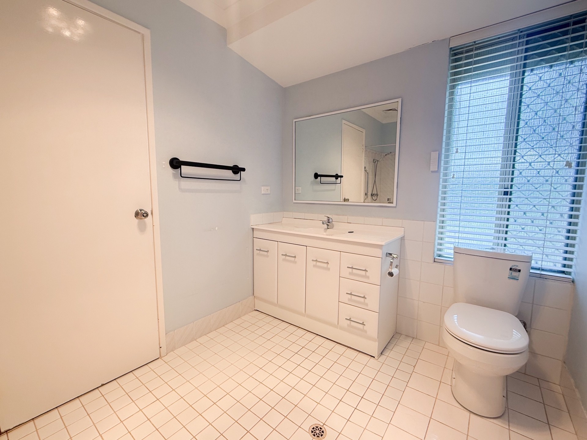 The master bedroom is a good size with carpeted flooring and an inbuilt robe. There is direct access to the bathroom, which serves as a semi-ensuite.