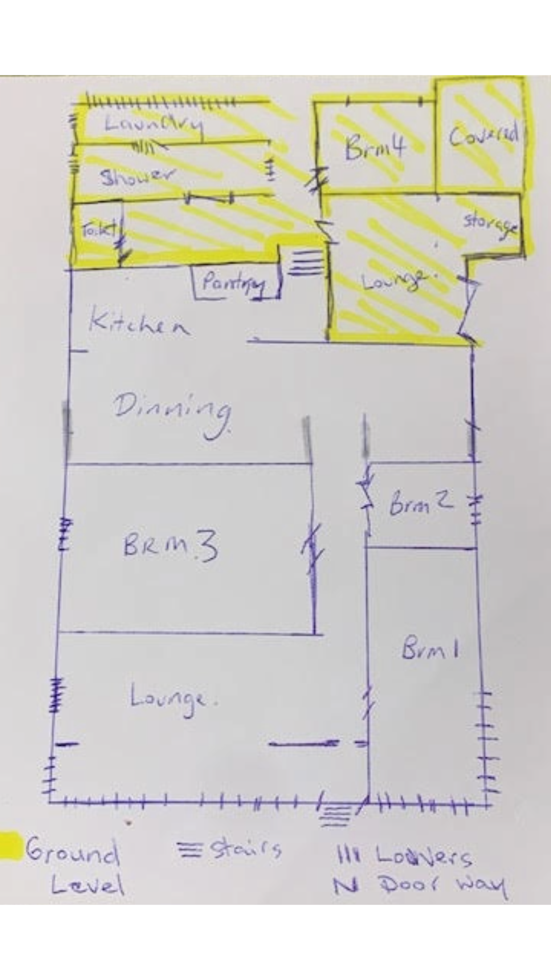 This property has been held by the same family for over 50 years. In the main house there is a double side main bedroom, front patio/lounge, two other bedrooms and a double dining area with an open kitchen. At the rear of the house there is an attached ground level living area that is tiled, double sliding doors with security screens, small kitchenette area and a bedroom. Also on the ground floor there is a masonry block separated toilet, bathroom and laundry area.