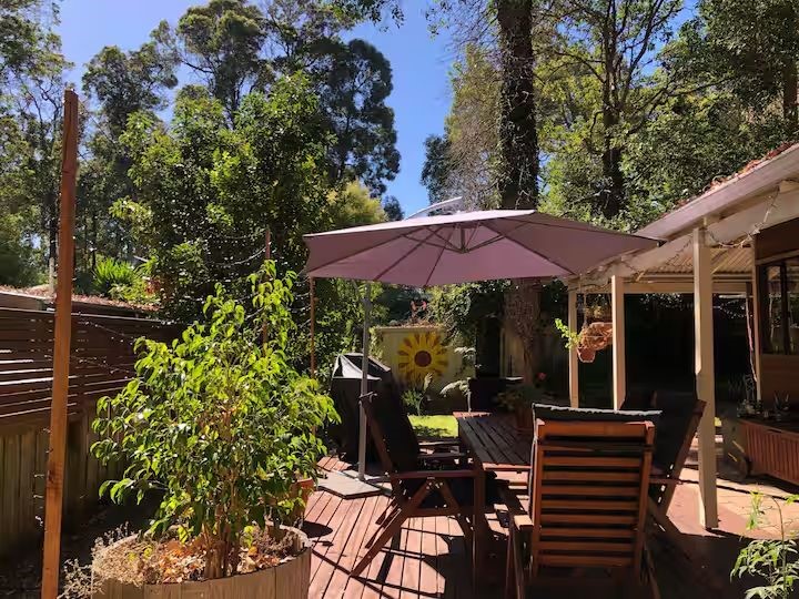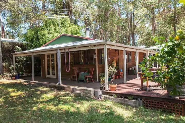 Outdoor living is a dream, thanks to the wraparound verandah offering year-round comfort and a spacious jarrah deck that steps down to a lawned area, perfect for relaxation or entertaining. Additional features include reticulated lawn and garden beds, undercover parking, spectacular mature trees, and a unique artistic gate that adds a touch of whimsy to the property.