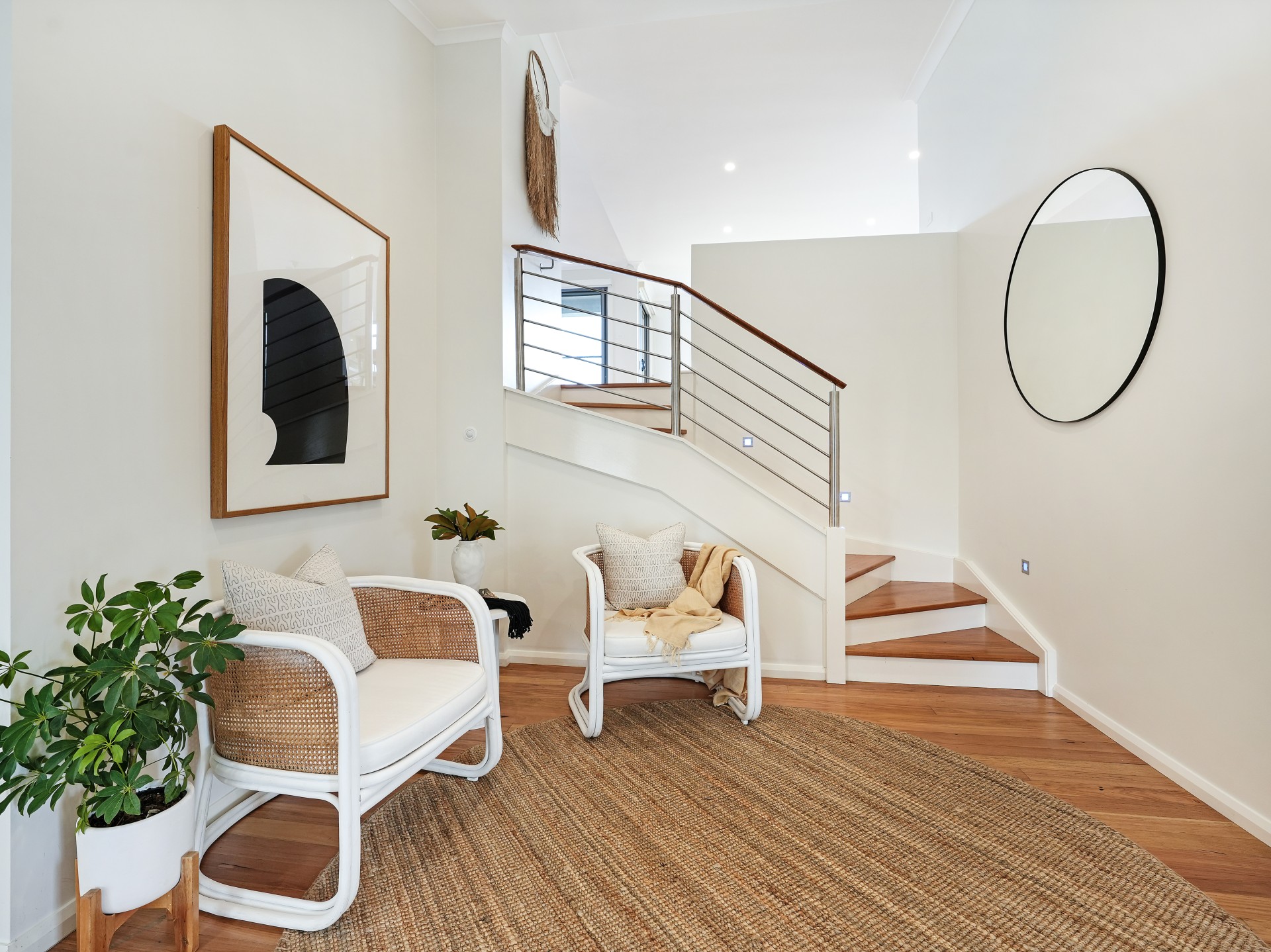 For added convenience, a private driveway leads to a double carport and a large storage room, providing ample space for vehicles and belongings. The addition of 6.6 kW solar panels not only reduces energy costs but also supports sustainable living. Modern smart home features further enhance the living experience, with voice- and app-controlled electric blinds, reverse-cycle air conditioning, dimmable lighting, and a grey water tank, making this home as efficient and convenient as it is beautiful. Traditional switches and remotes are still available for those who prefer them.