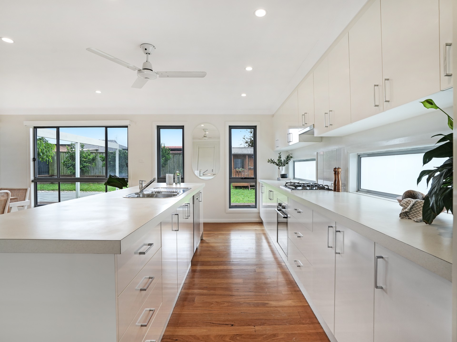 Start your day by enjoying the leafy views from the balcony, then step inside to a spacious open-plan layout designed for seamless indoor-outdoor living. The sun-soaked kitchen is both stylish and functional, featuring a breakfast bar, built-in dishwasher, and a generous walk-in pantry-offering plenty of storage and benchtop space for even the most avid home chef. The kitchen effortlessly flows into the dining and living areas, creating a large, airy space that's perfect for everyday living and entertaining. Both the living and dining rooms open to a private, fully fenced backyard that's ideal for children and pets. Complete with a paved patio, fruit trees, and a cubby house, it's a wonderful space for outdoor living.