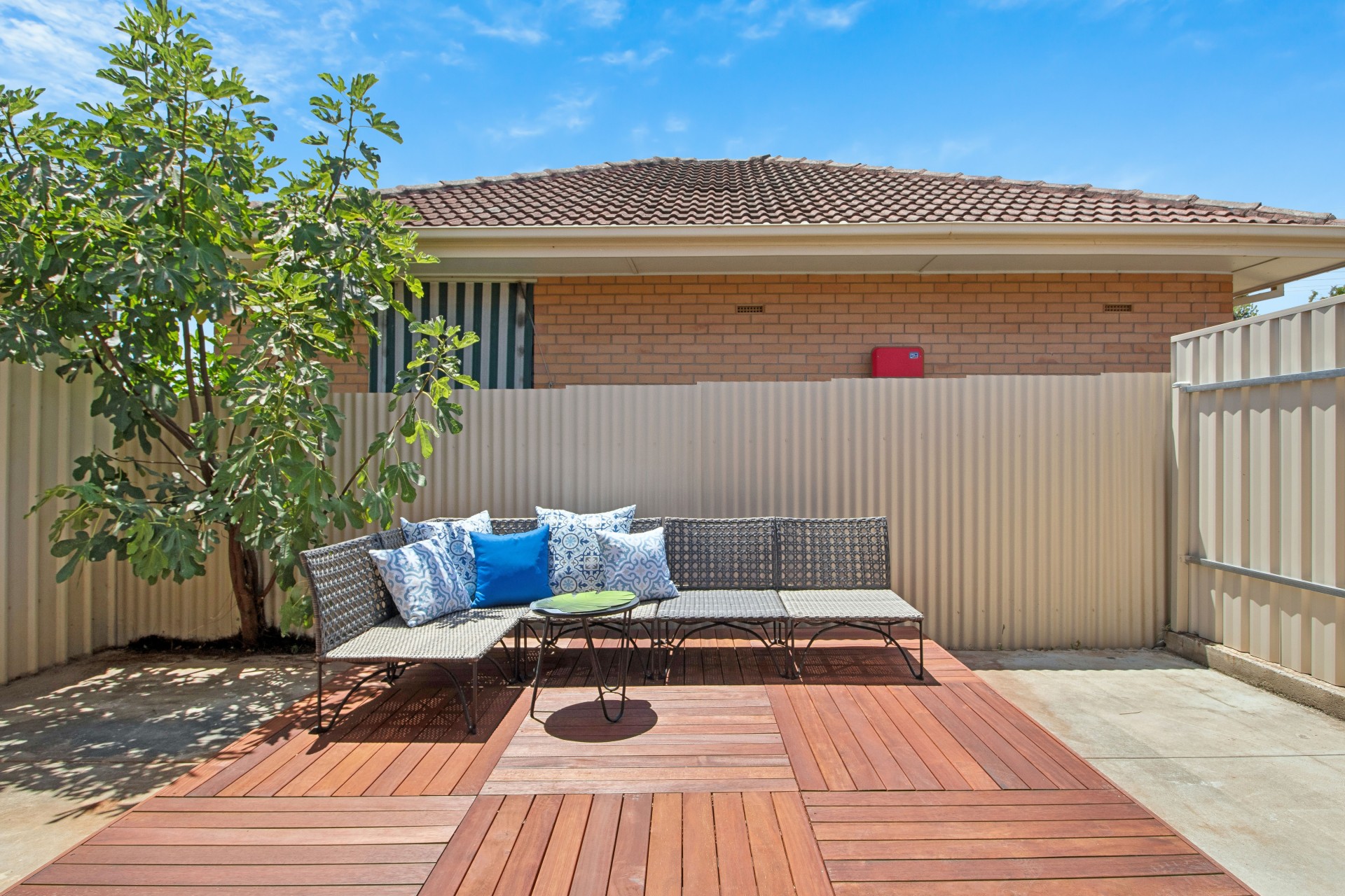 Outside: A charming private rear courtyard with deck area - the perfect spot to unwind, enjoy a morning coffee or BBQ.