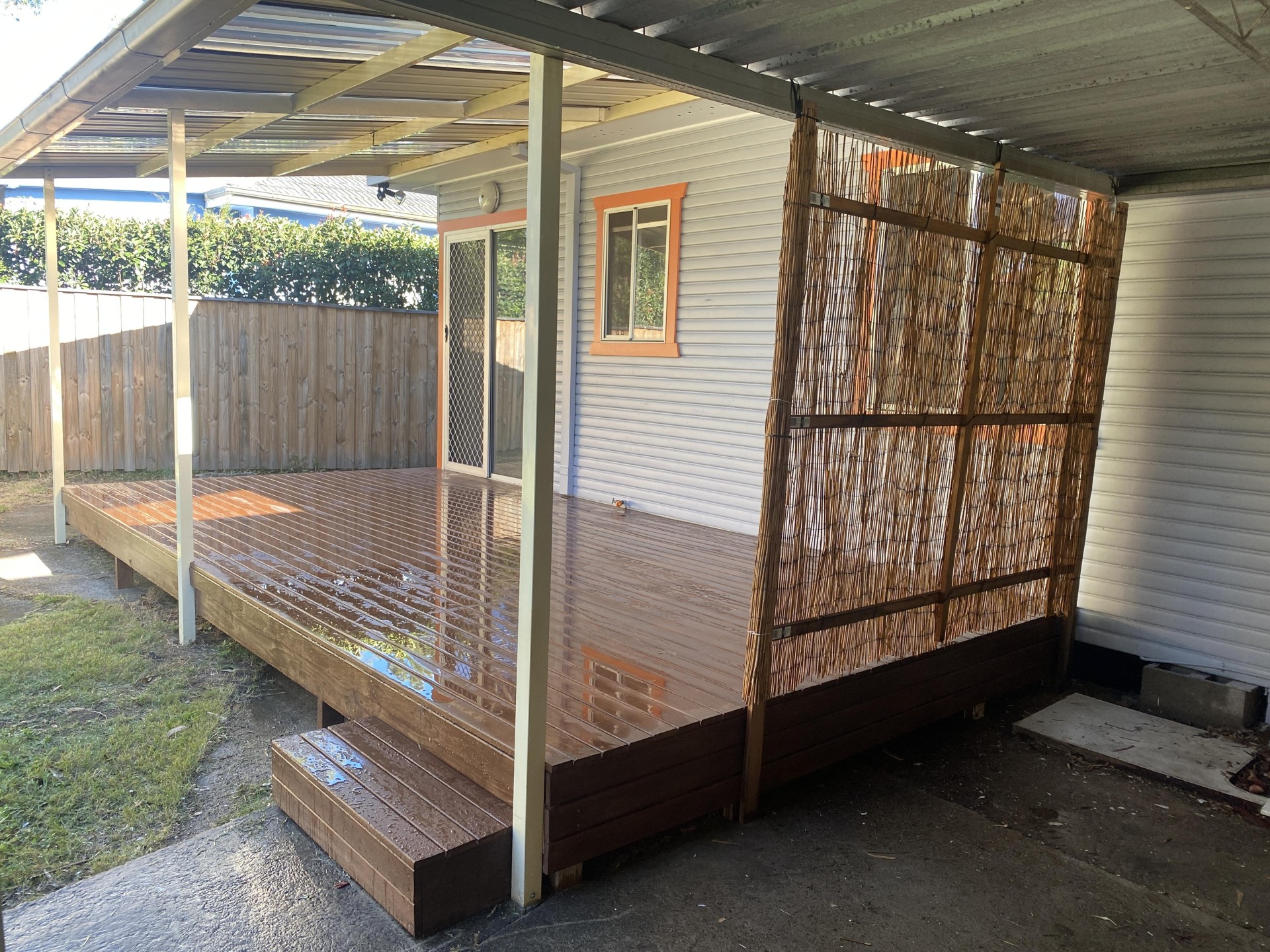 - Versatile back yard decking patio,