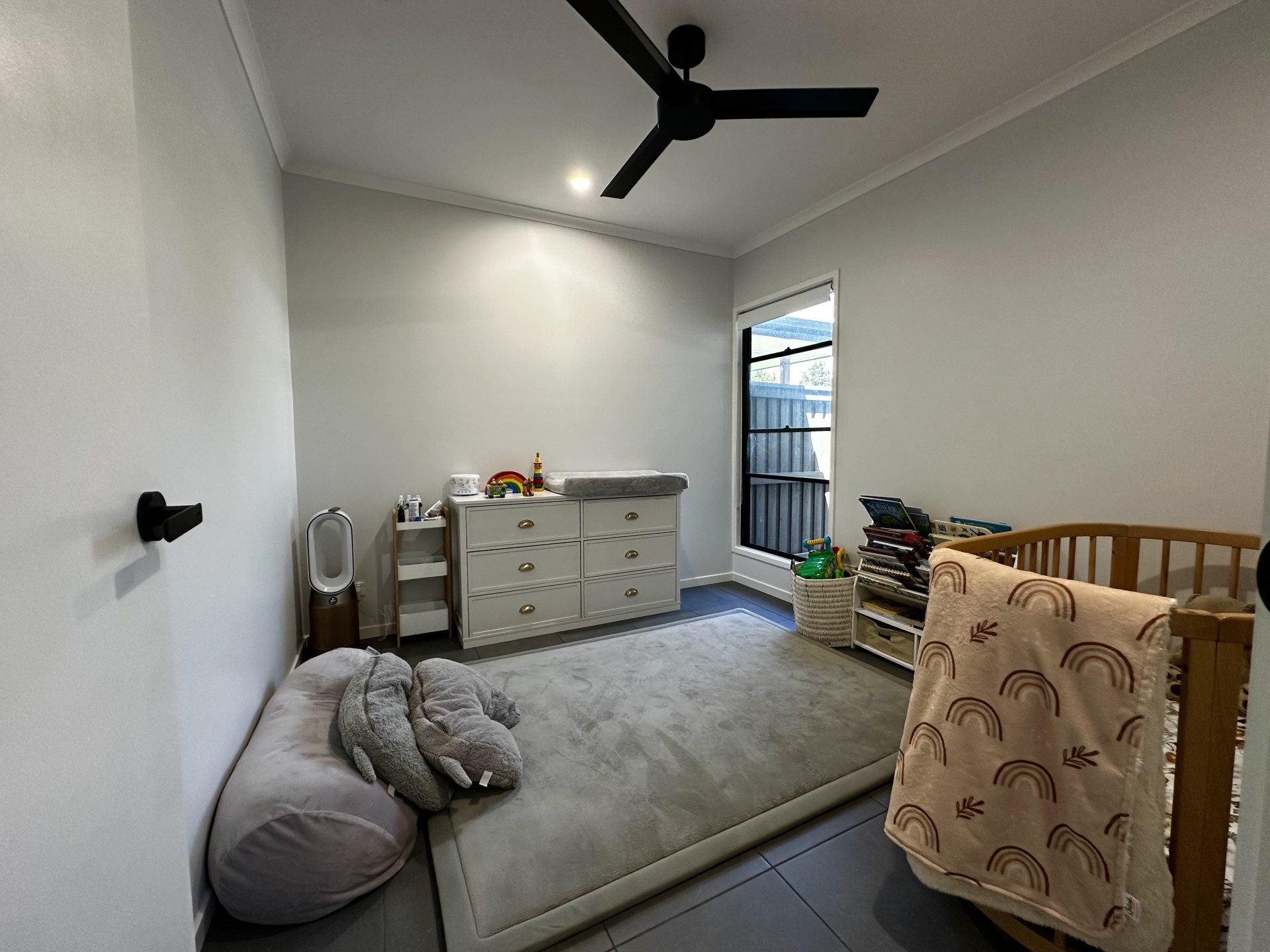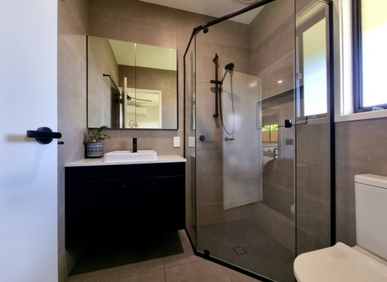 • 2 Bathrooms: Featuring floor-to-ceiling tiles and sleek black fittings for a modern, sophisticated touch.