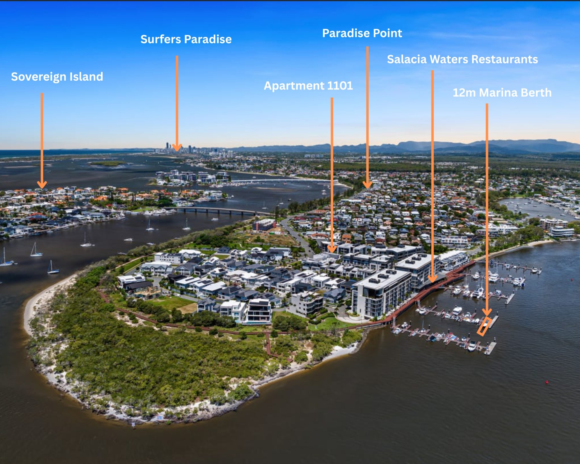 Paradise Point is a highly sought after location on the Gold Coast, popular for retirees, families and professionals alike. Salacia Waters located at the northern end of Paradise Point and opposite Sovereign Island, is a resort-style living precinct with enviable views, amenities and accessibility.