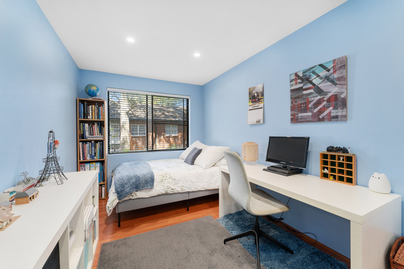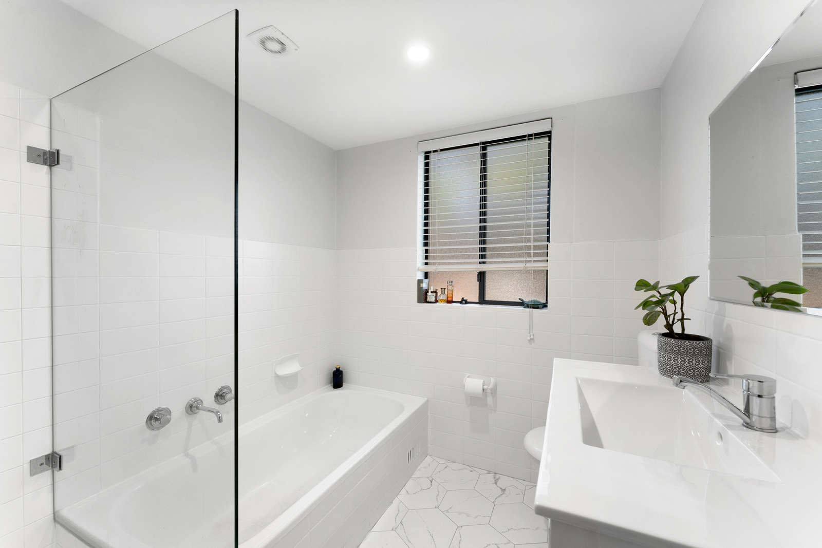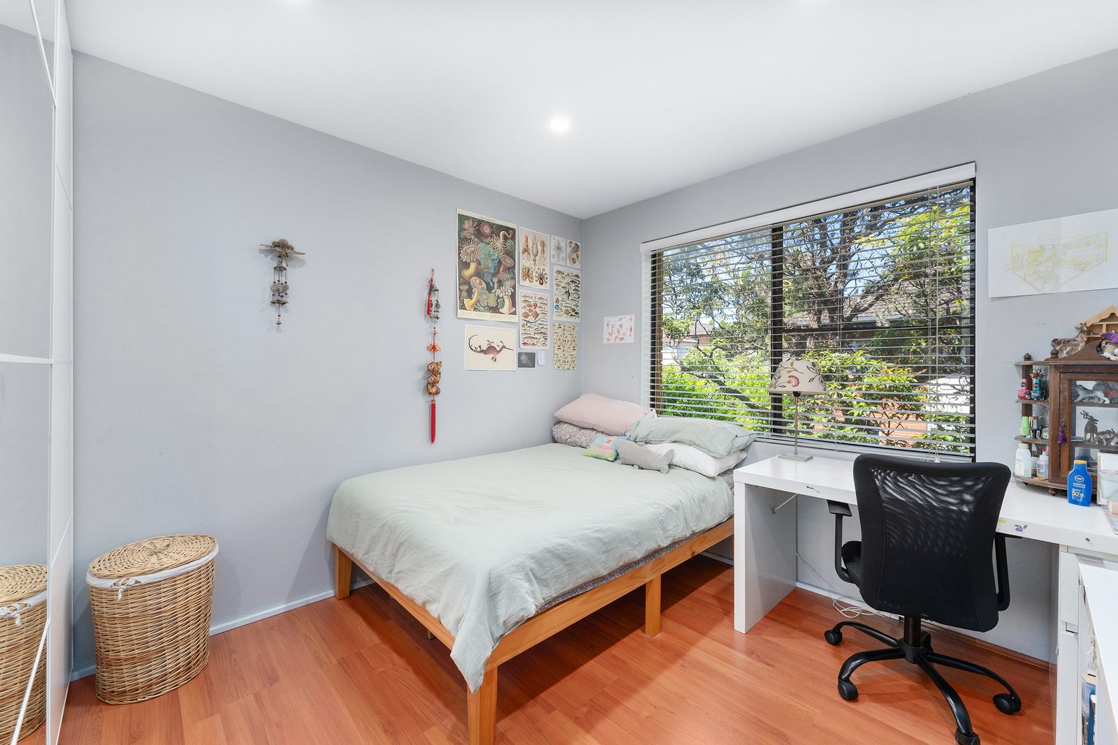 Floating floorboards throughout living areas and bedrooms. Timber venetian blinds to bedrooms and kitchen.