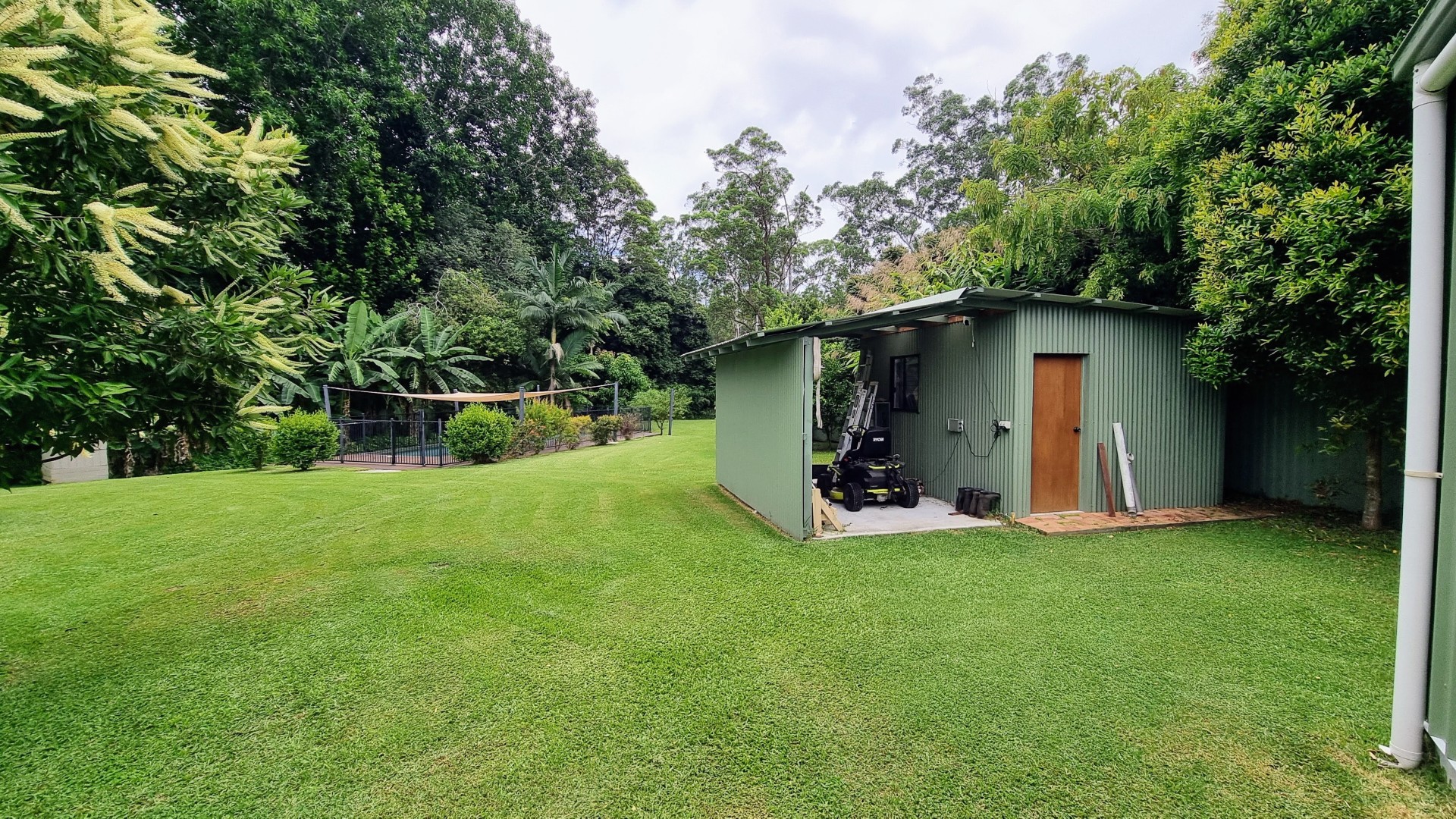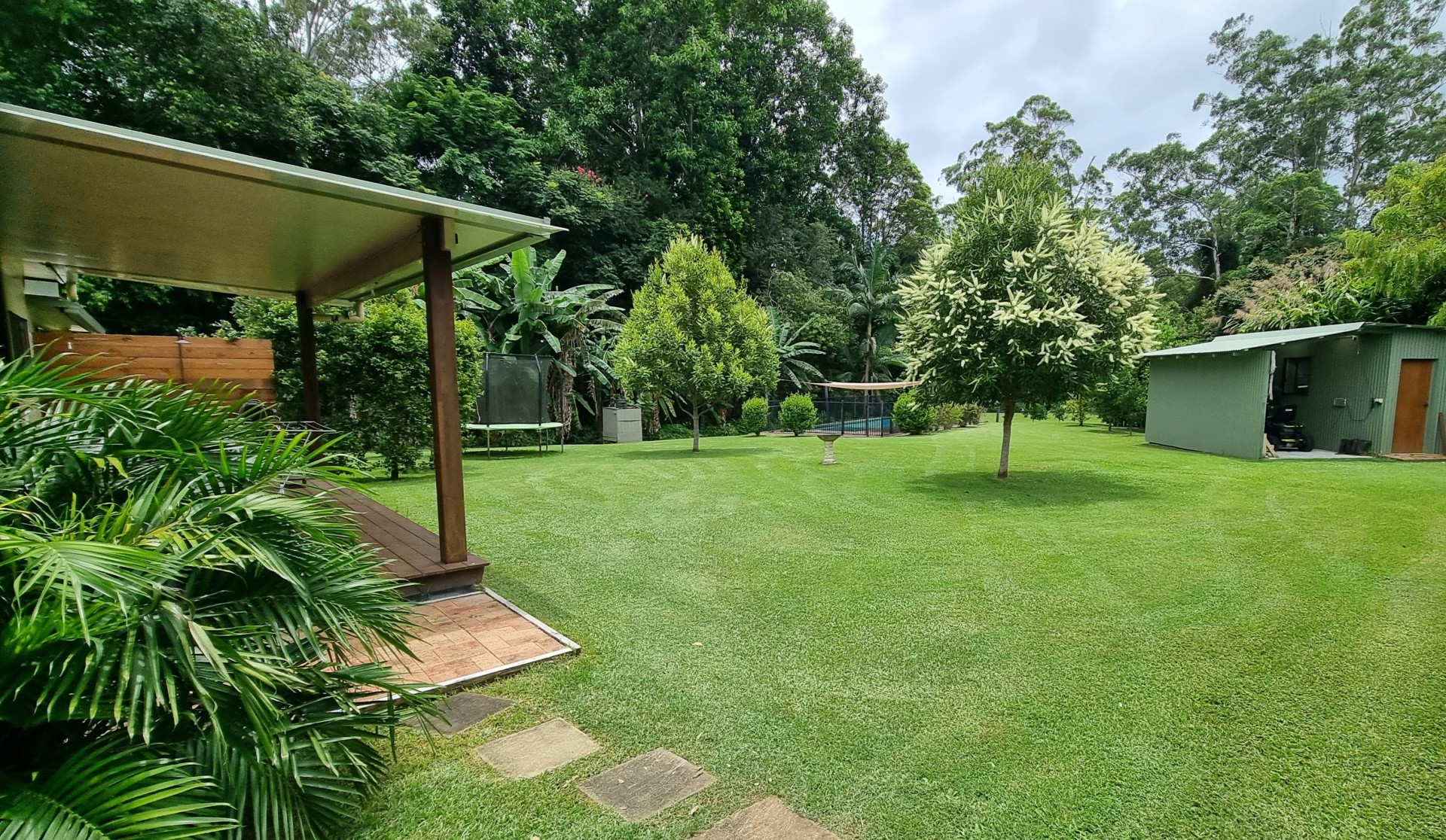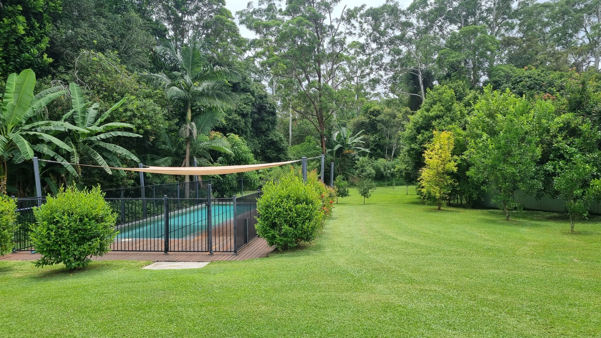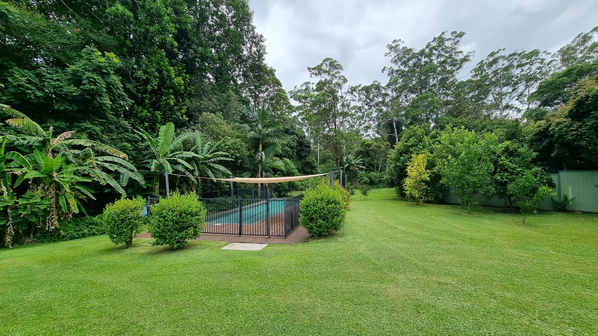 A large and beautifully manicured garden, with 12m saltwater lap pool, offers a tranquil and relaxing retreat vibe. The merbau back deck is the perfect place to entertain and enjoy the peaceful Hinterland surrounds. The spacious garden area offers ample space for children and pets to play amidst the serenity of this natural, green wonderland. Established fruit trees include guava, lemon, mandarin, macadamia, pomegranate, peach, nashi pear and banana.