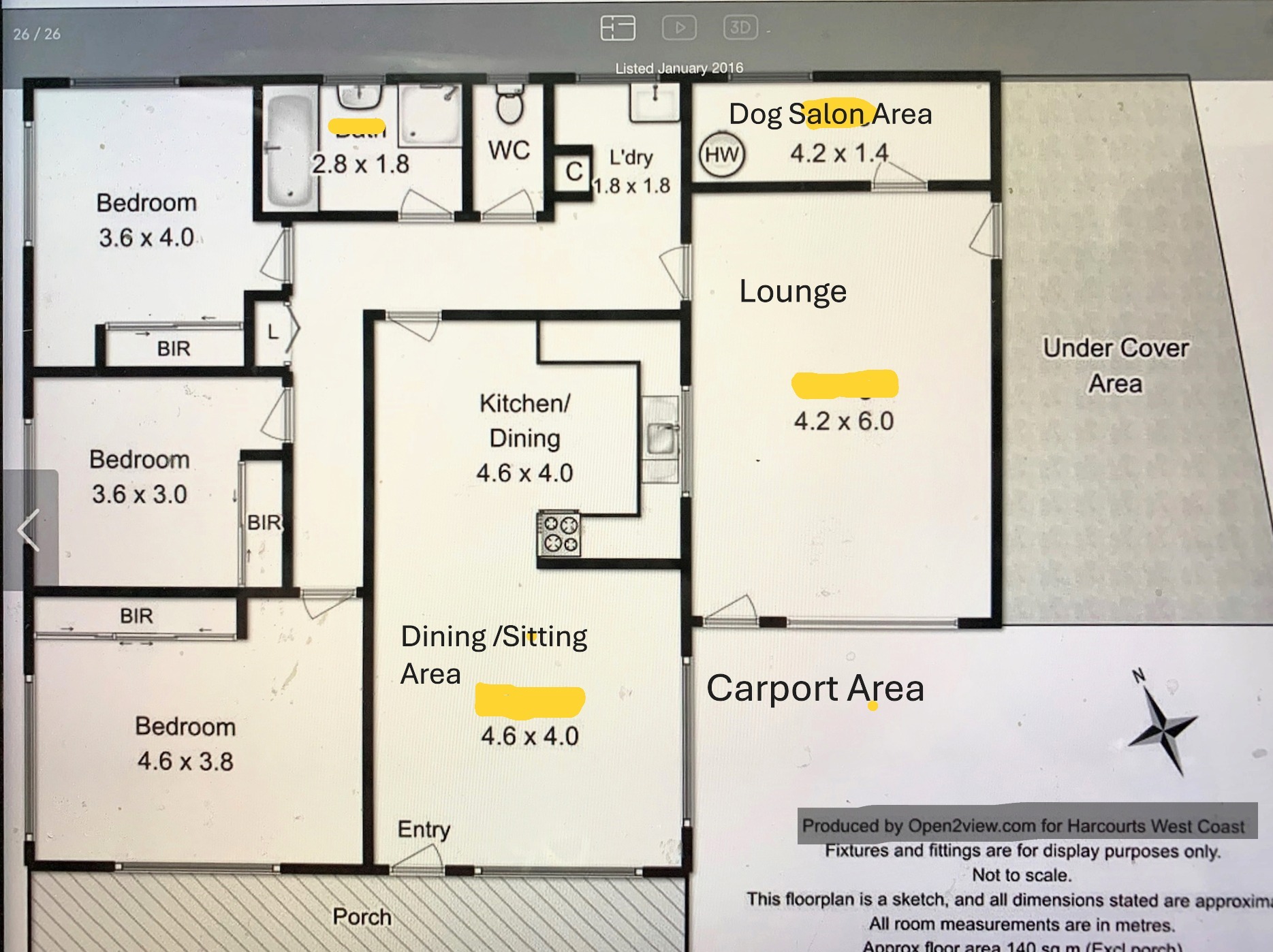 The main bathroom has been renovated. This includes new shower recess, new vanity, linen cupboard, wall tiling and towel rack. Floors are ready for tiling. The second bathroom has had worked commenced for a dog salon. There is a large, raised dog bath, washing machine for towels Dog shower has hot and cold-water access and a 250 litre hot water system which was purchased 2 years ago. A Tastic light has been purchased for fitting. The salon finishing off material has been purchased for the bathroom floors, now waiting for the new owner to fit out.