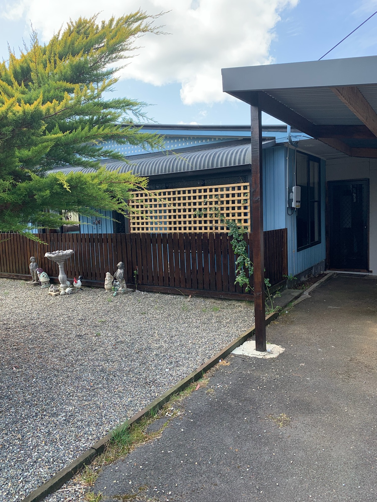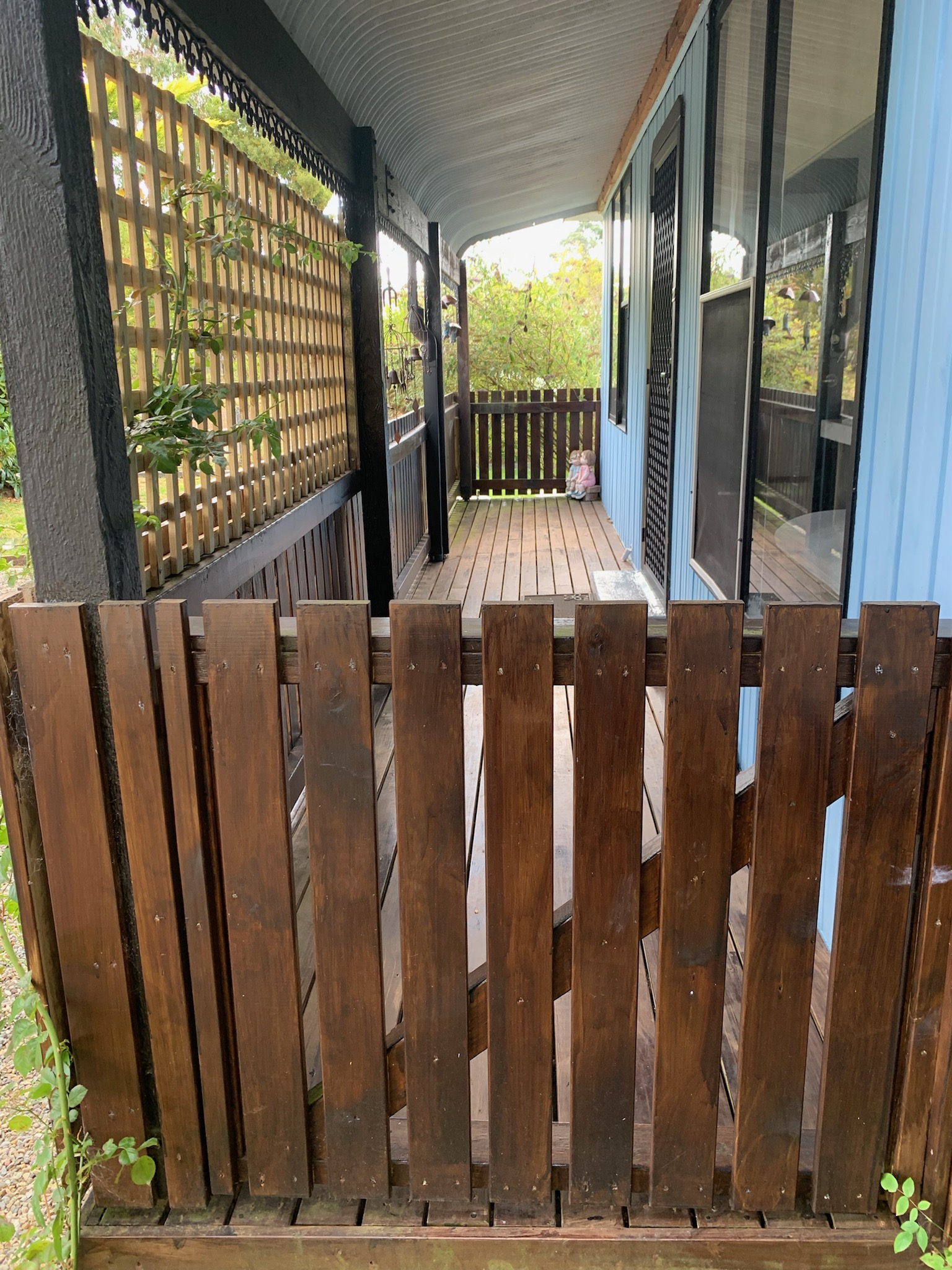 Front veranda has new wooden rails and floorboards and gate providing access to the carport area