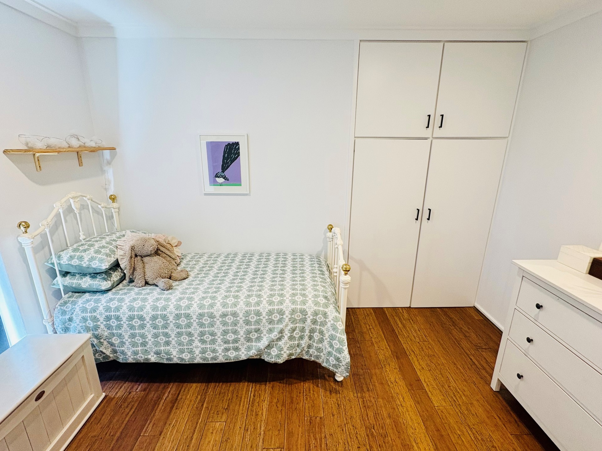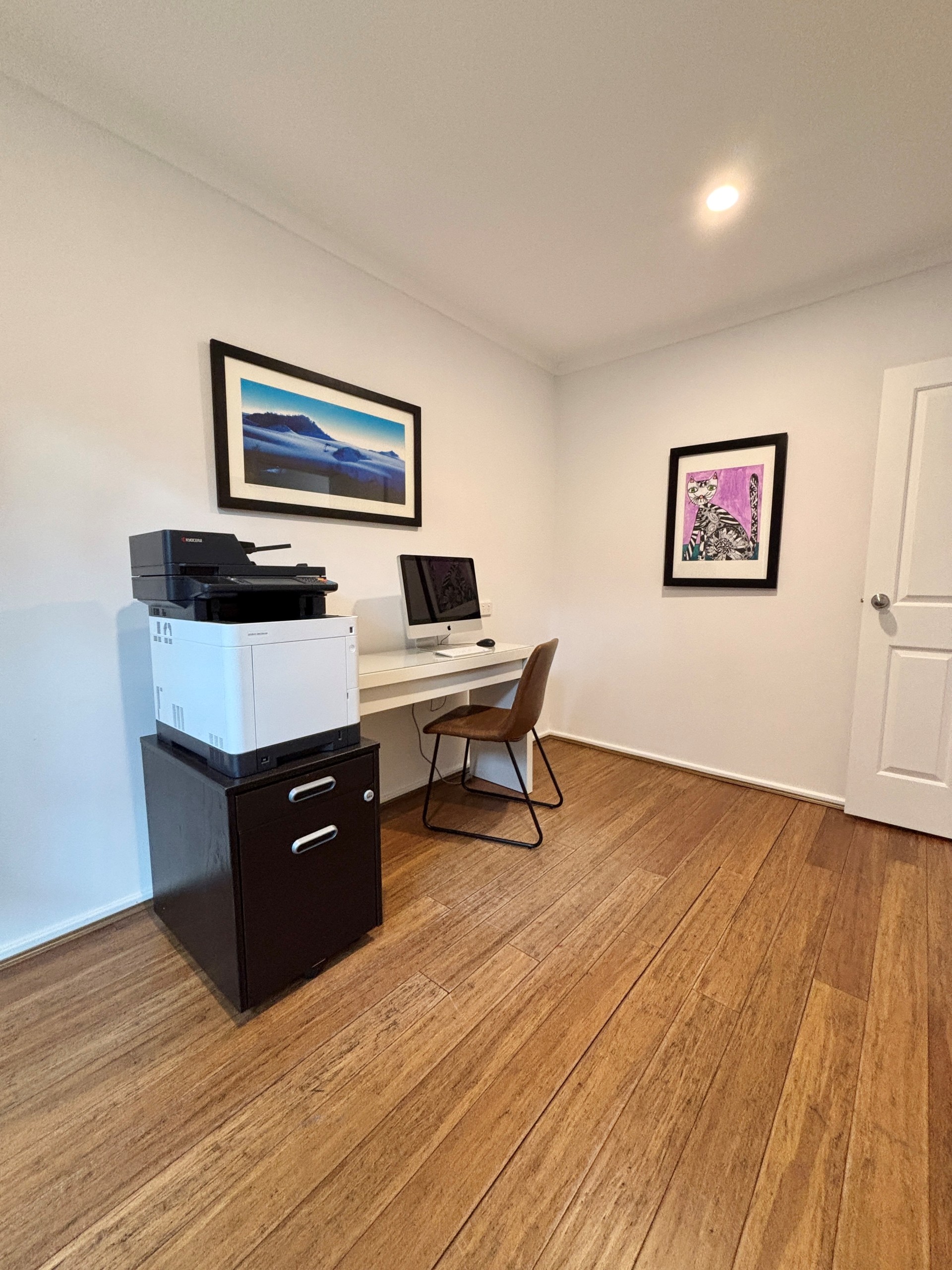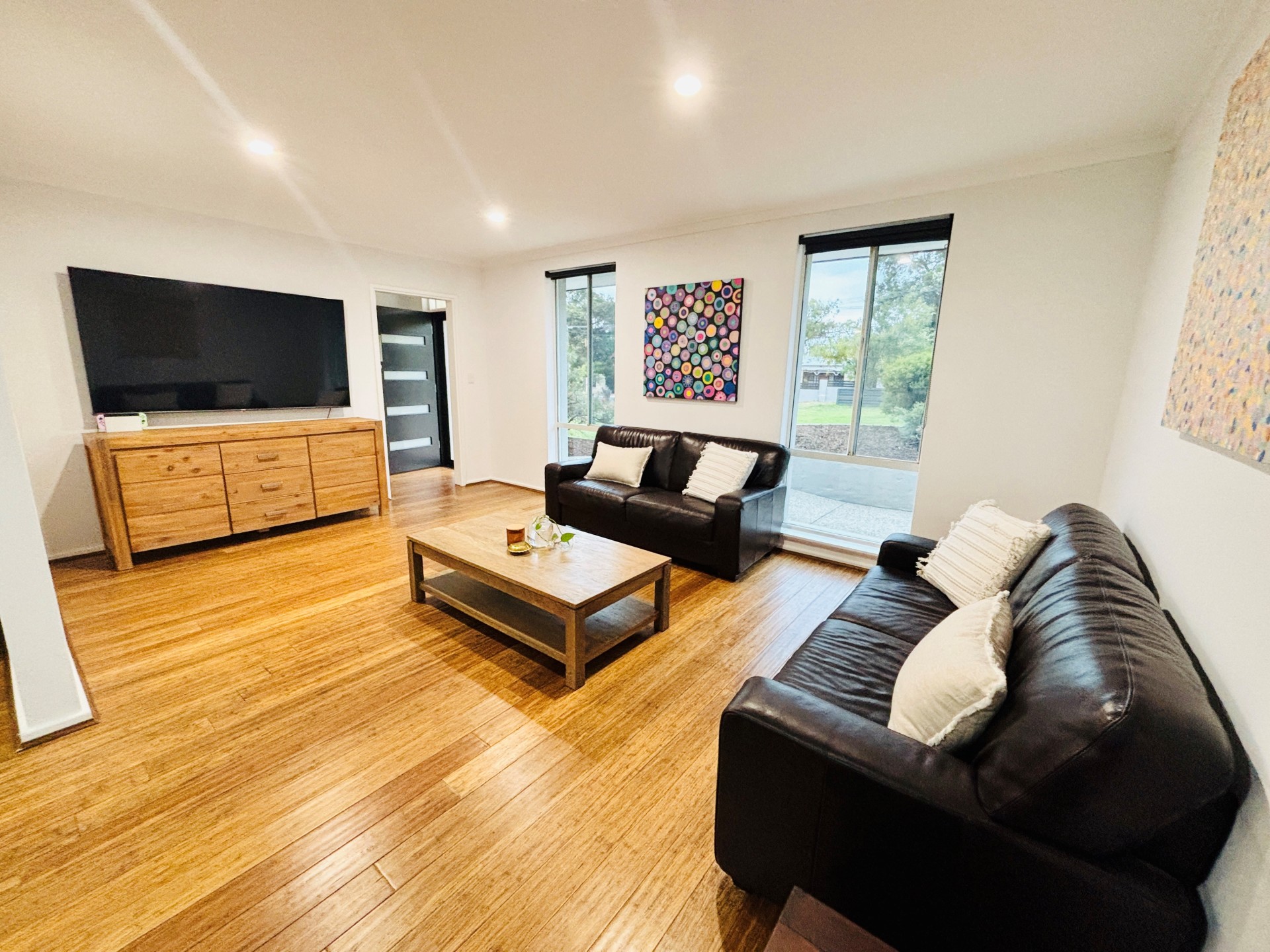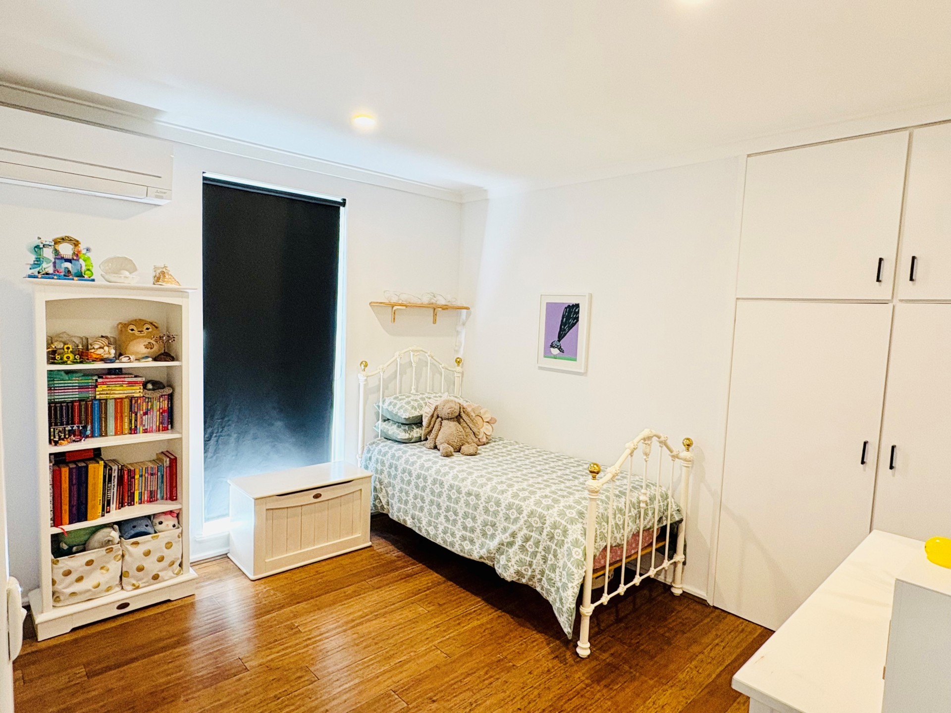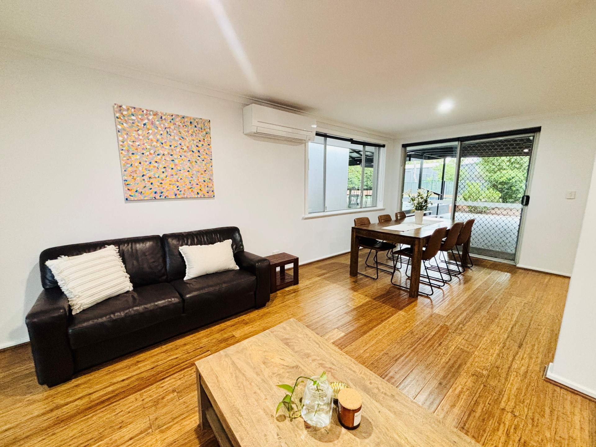 Inside the house has solid bamboo flooring throughout and is cooled by 4x split system air conditioners. The master bedroom has a walk-in robe and ensuite with a heated towel rack. The bathrooms are light and bright. The kitchen is equipped with a gas cooktop and breakfast bar. The renovated laundry features plenty of overhead cupboards for storage.