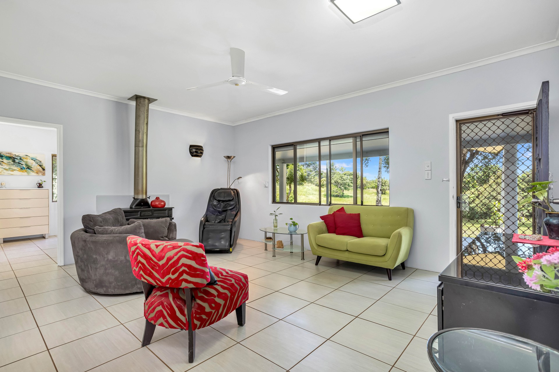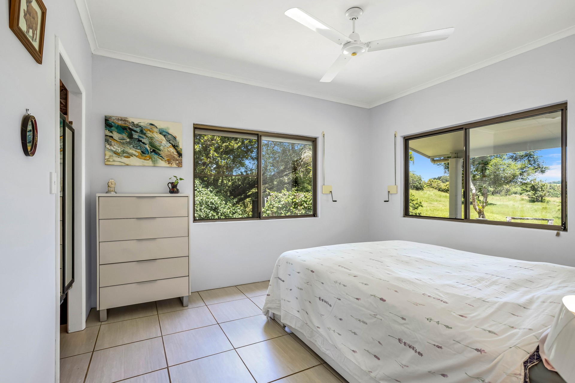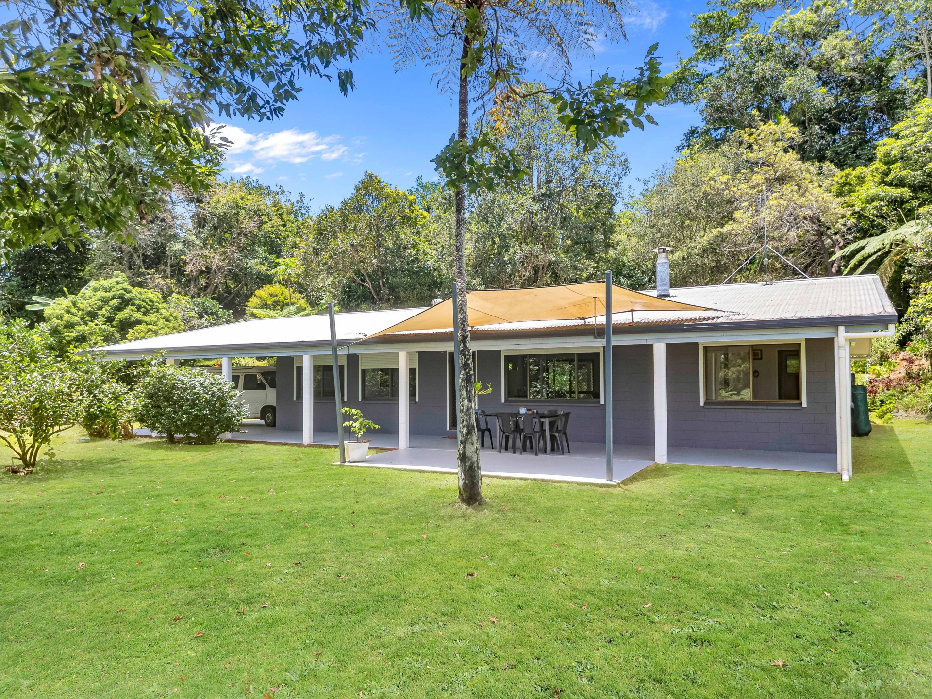 This property is ideal for those seeking space, privacy, and a self-sufficient lifestyle, featuring rich red soil and a spring-fed dam. A variety of citrus, tropical fruit trees and established gardens surround the home.