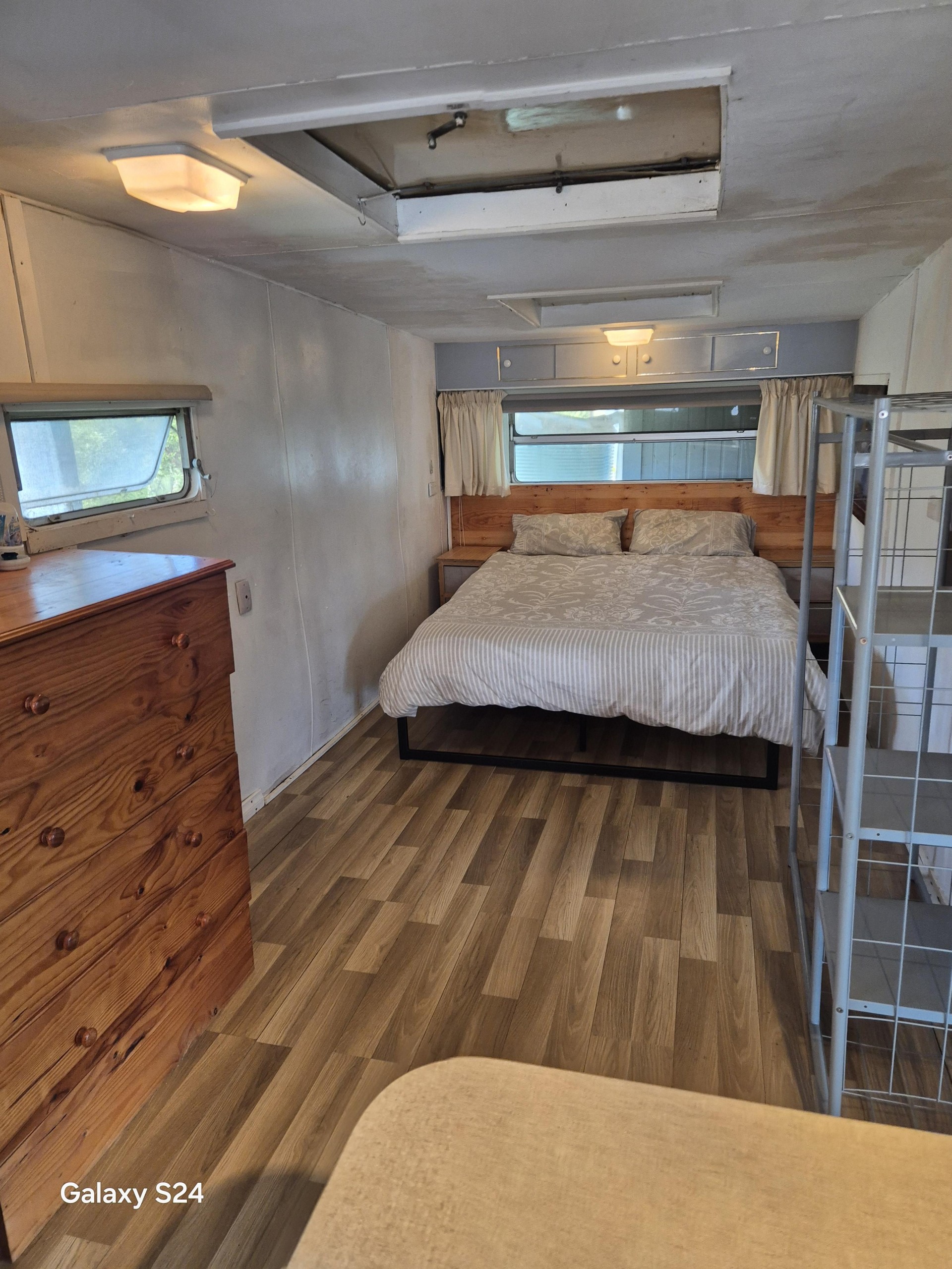 Situated in a quiet street of Swansea a Viscount caravan fixed, no wheels and located under a large covered shed area with attached annex. Inside the caravan is good storage a small kitchen and sink and a queen sized bed and then down a couple of stairs is the annex is with a couch futon for an extra bed and a lounge room area that looks out towards the bush, very private. All furniture comes with the sale of the property. Inc, QS bed ,Futon lounge, electric heater, washing machine ,fridge ,buffet, small shed for garden tool, outdoor lounge located on deck area and several extra cupboards for storage. Full sized bathroom with shower and vanity, ixl for heating, and a tank connected to toilet.
