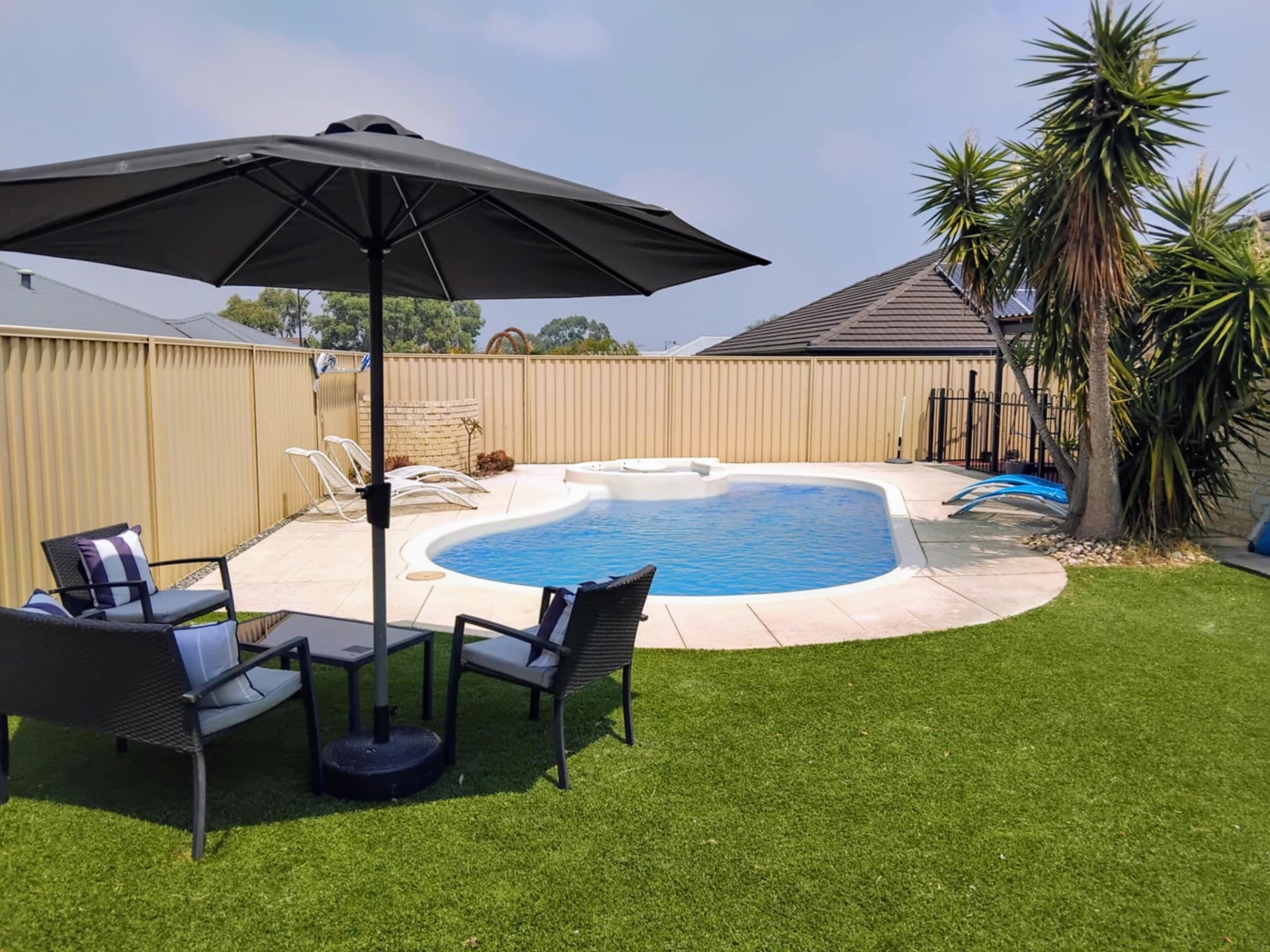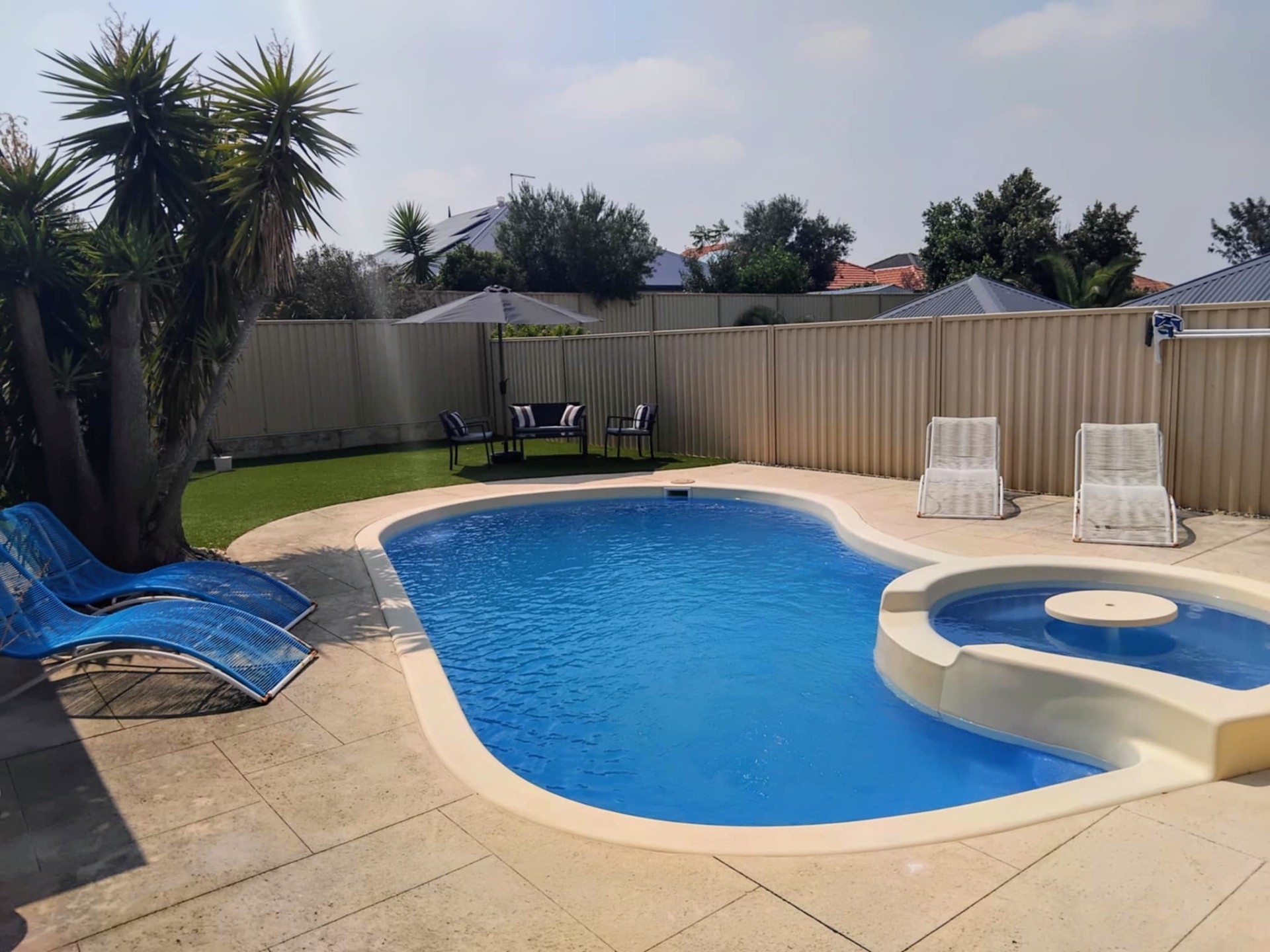 Outside there's a swimming pool with built in jacuzzi, spacious backyard with low maintenance artificial lawn and enough room for the trampoline or swings.