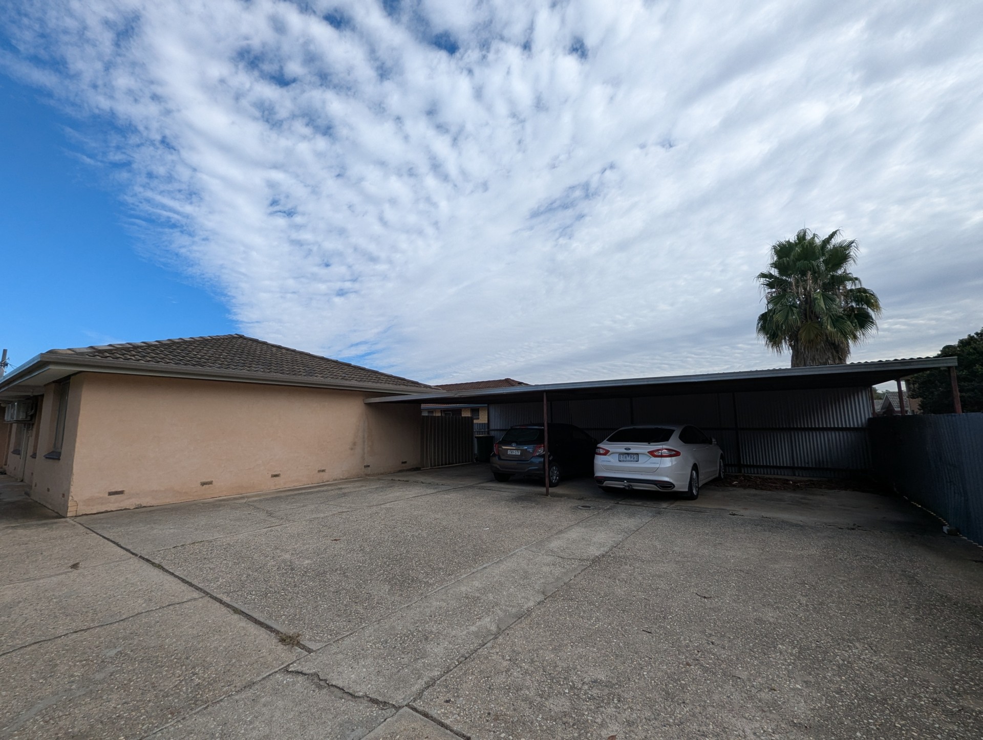 Super-convenient, low maintenance 2B, 1B (3-way separate laundry, shower & toilet), 1 carport at rear.
