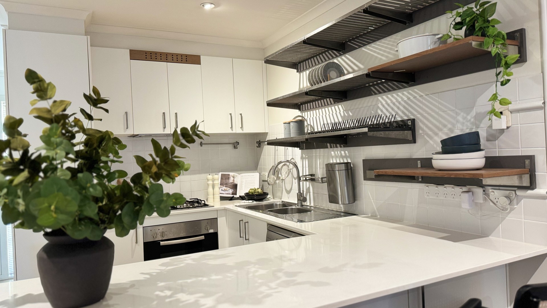 - Fully equipped modern kitchen with pull-out pantries, push-out bins, quality appliances and add-ons