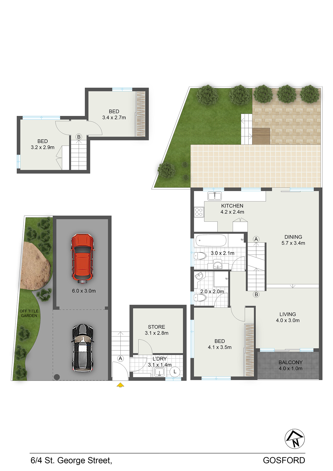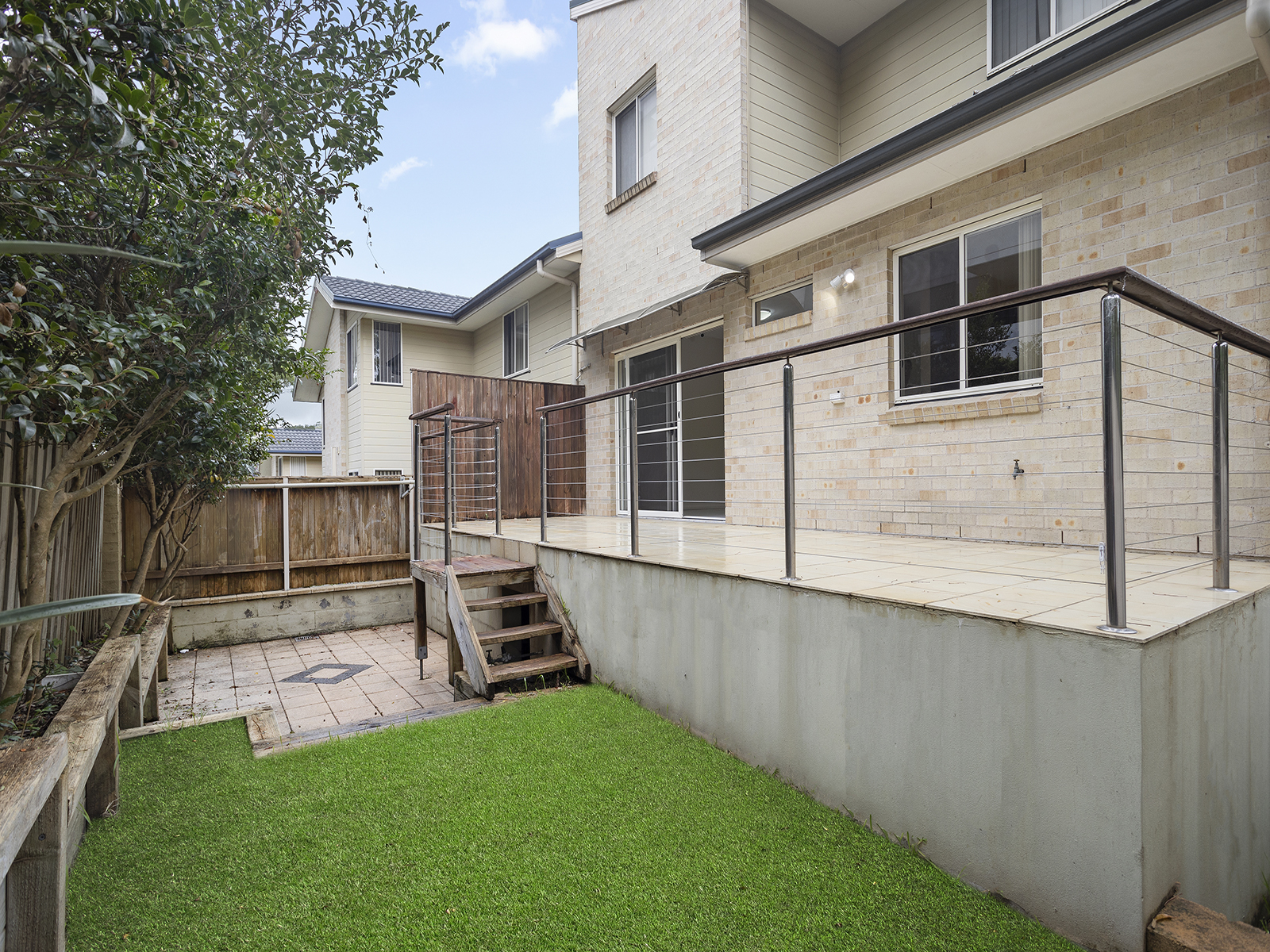 Quietly positioned at the back of an established boutique block of only six residences, you will find this brick townhouse enjoying a three-way aspect with just one common wall. Spread over three well-considered levels, this three-bedroom home gifts a spacious open-plan layout flanked by a long balcony and a north-facing terrace with a wrap-around lawn and garden space. The spacious kitchen overlooks the garden while serving up plenty of bench space, custom cabinetry, pantry and induction cooking. Immersed within leafy surrounds; the property is on the east-facing escarpment above Gosford City Central in a quiet, tightly held and highly desirable location. Just an 800m walk from the train station, you will find yourself 850m from Gosford Waterfront, close to shopping malls and various cafes and restaurants. Nearby are Industree Group Stadium, The Entertainment Grounds, and family-friendly recreational areas, enhancing opportunities for both short-term and long-term rentals. CBD fringe opportunities like this are few and far between. This truly is a supreme Central Coast real estate opportunity for a comfortable home or investment property.