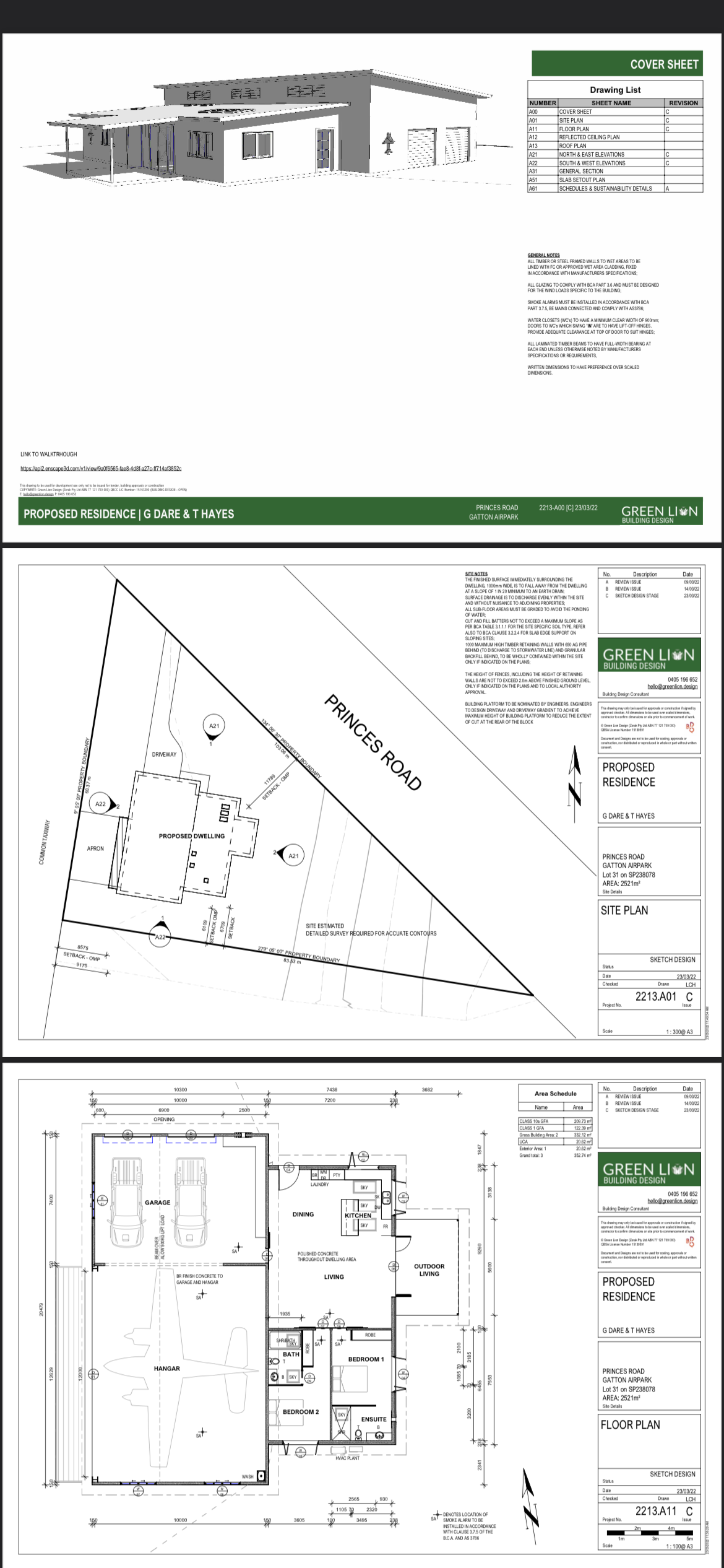The current plans is for a combined hanger home with 2 bedrooms, 2 bathrooms and a hanger big enough for a B55. A combination is not required. separate hanger and home could also be an option depending how you wanted to use the land.