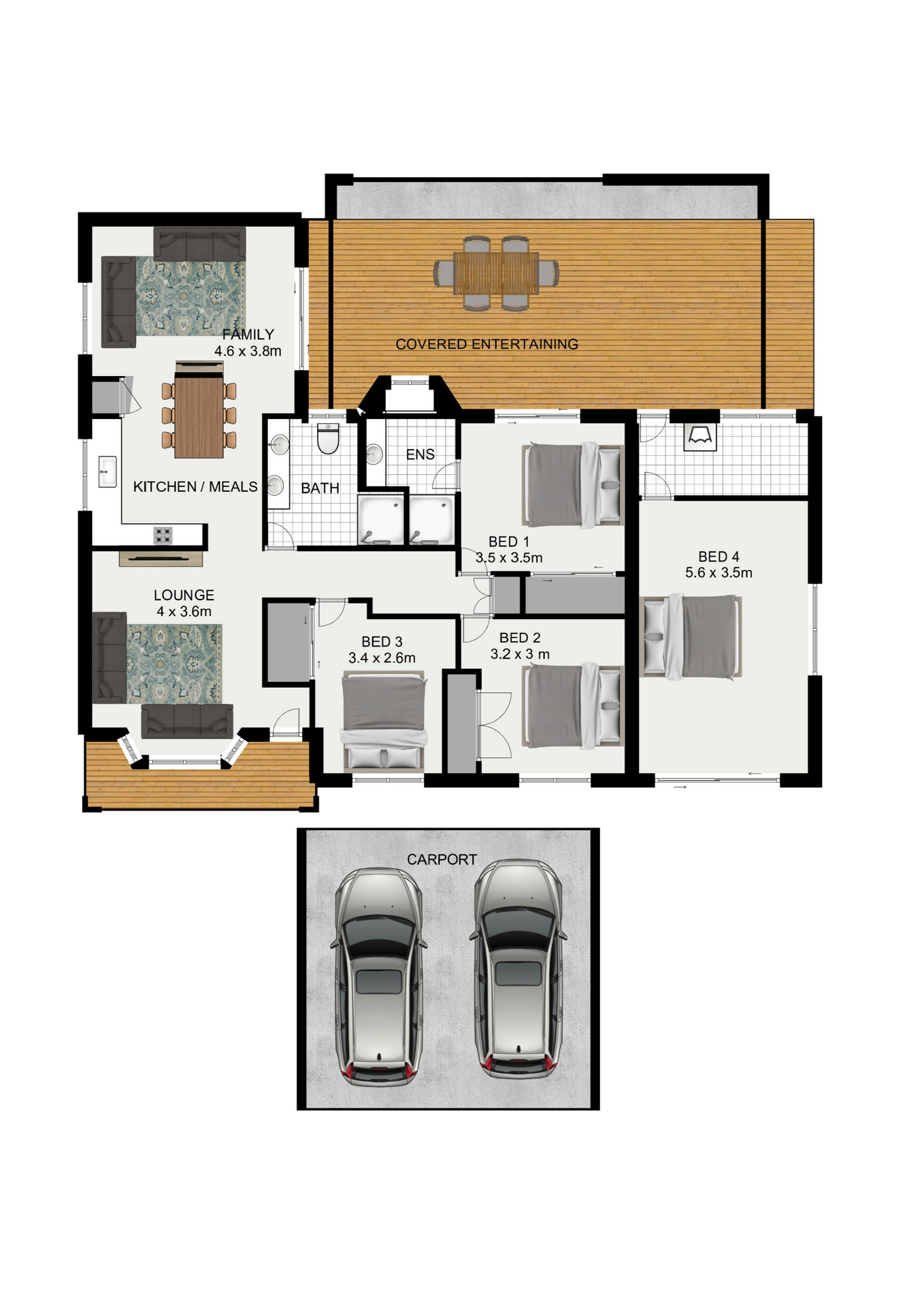 The fourth bedroom serves as a teenage retreat or a separate living space for grandma, complete with its own private entrance.