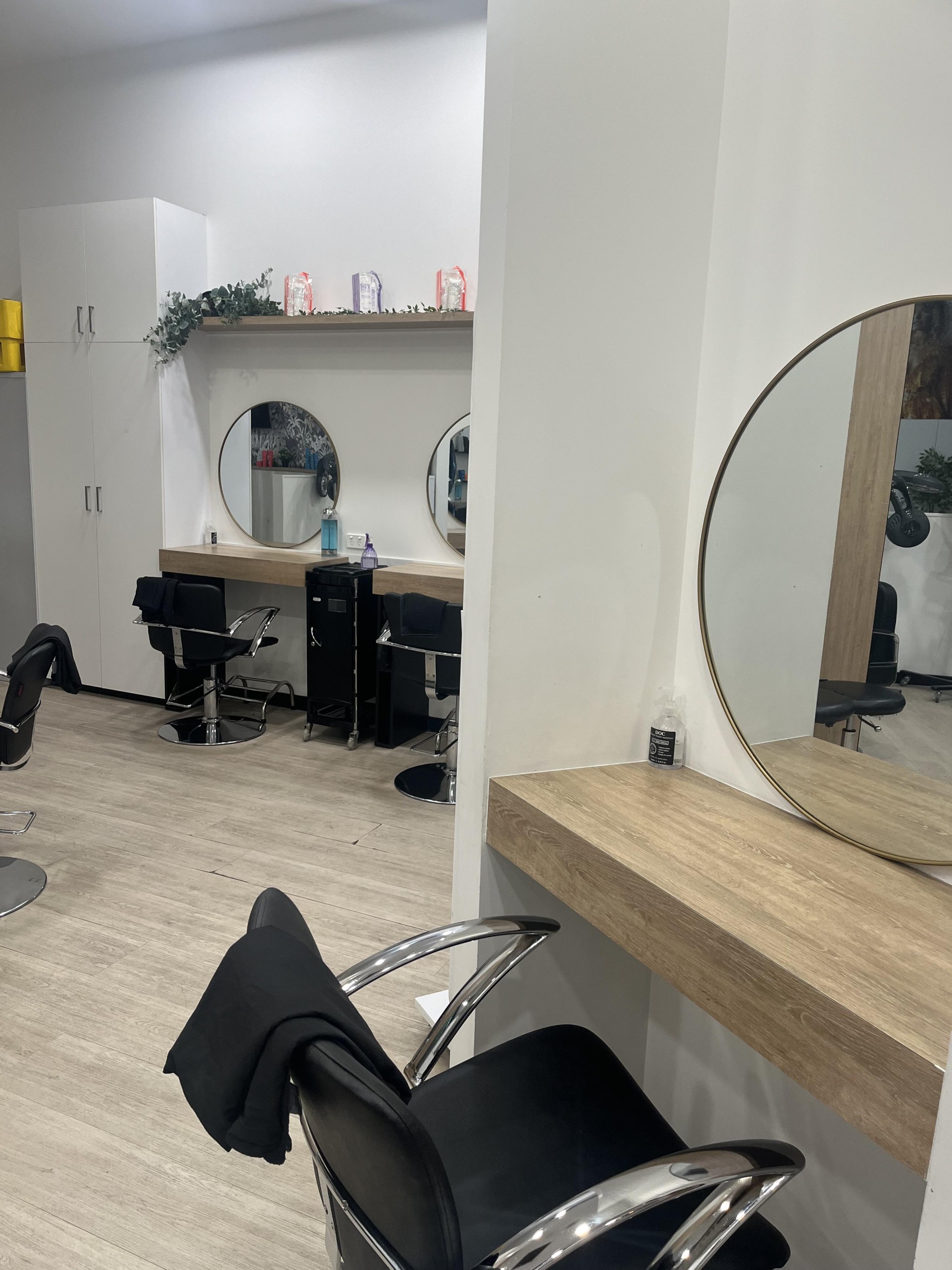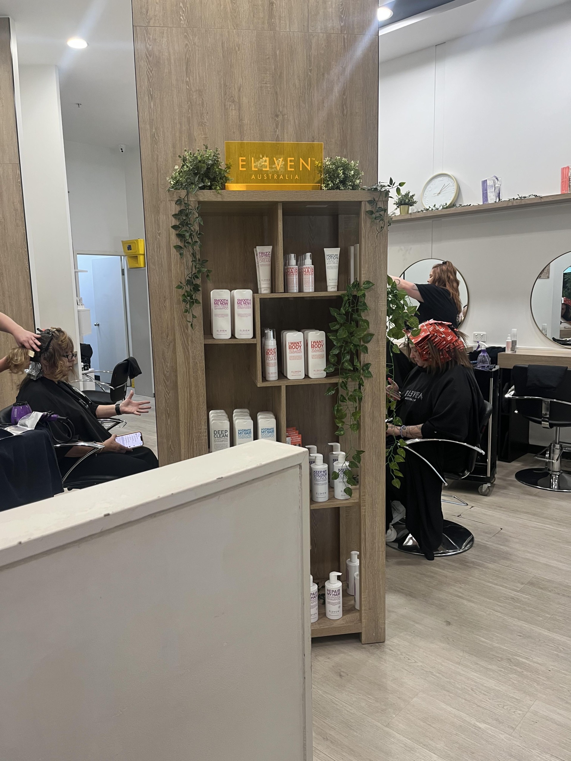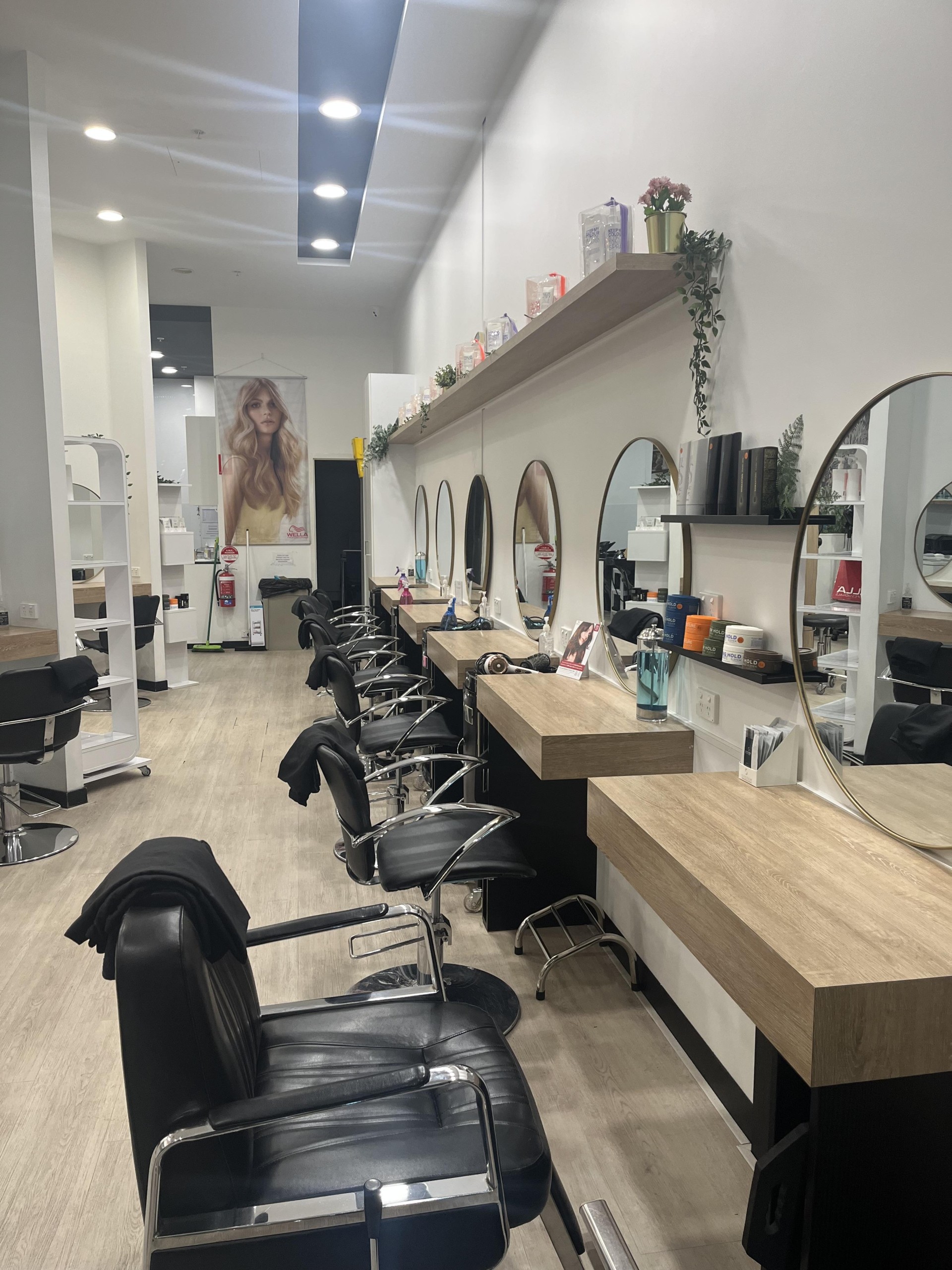 15 work stations specialising in haircuts, colouring, perming, styling and more.