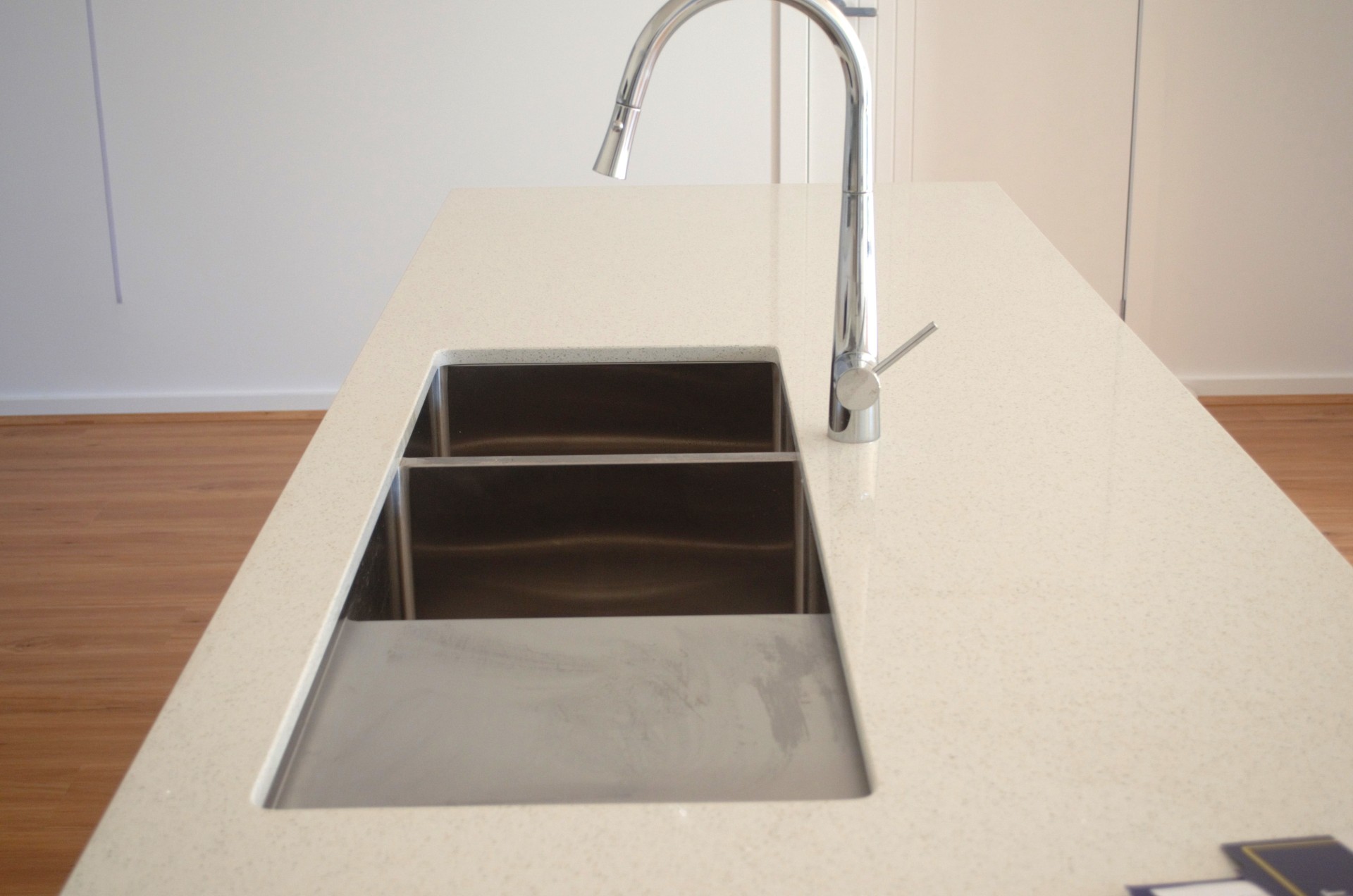 - Centrally located gourmet kitchen with a huge stone waterfall island bench, striking glass splashback, and premium 900mm appliances (cooktop, oven, and dishwasher).