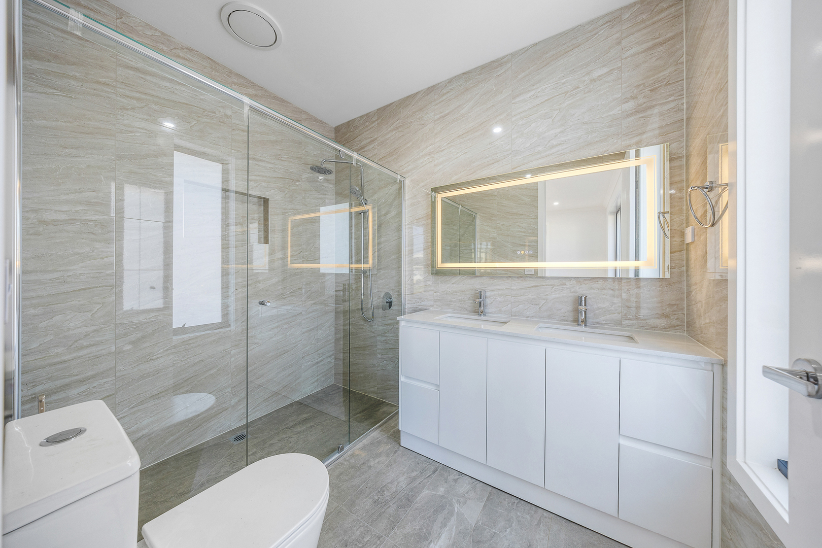 The accommodation is equally impressive, offering 4 spacious bedrooms designed for comfort and privacy. Retreat to the luxurious master suite, which features block-out blinds for a perfect night's sleep, a generous walk-in wardrobe, and a resort-style ensuite. In the master ensuite, you'll find a dual-sink vanity, expansive LED-framed mirrors, and a separate WC - all the makings of a spa-like experience right at home. Three additional bedrooms are beautifully appointed; one has its own walk-in robe, while the others include built-in mirrored robes to maximize storage and light. These rooms are serviced by a stylish main bathroom complete with a deep-set bathtub for relaxing soaks, a separate glass-enclosed shower, and the convenience of an additional powder room perfect for guests.