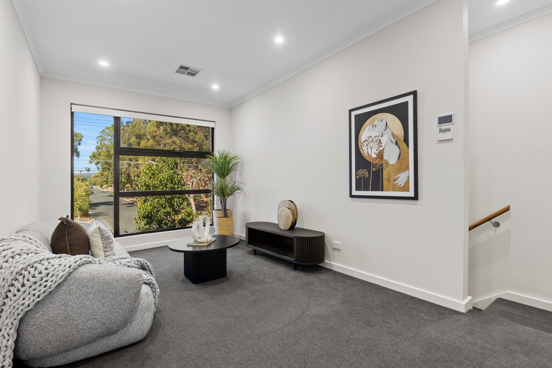 The kitchen is a chef's dream, equipped with ample counter space, high-quality 2-pack cabinetry, an abundance of storage, a large gas cooktop, microwave space, and sleek marble benchtops. Whether you are preparing a family meal or hosting guests, this kitchen is designed for both functionality and style. The master bedroom located on the ground floor offers a true sanctuary, with a built-in robe and an elegantly tiled ensuite. Upstairs you will find two generous sized bedrooms fit with built in robes, the main bathroom and additional retreat area overlooking the Adelaide Hills and Sandery Avenue Reserve.