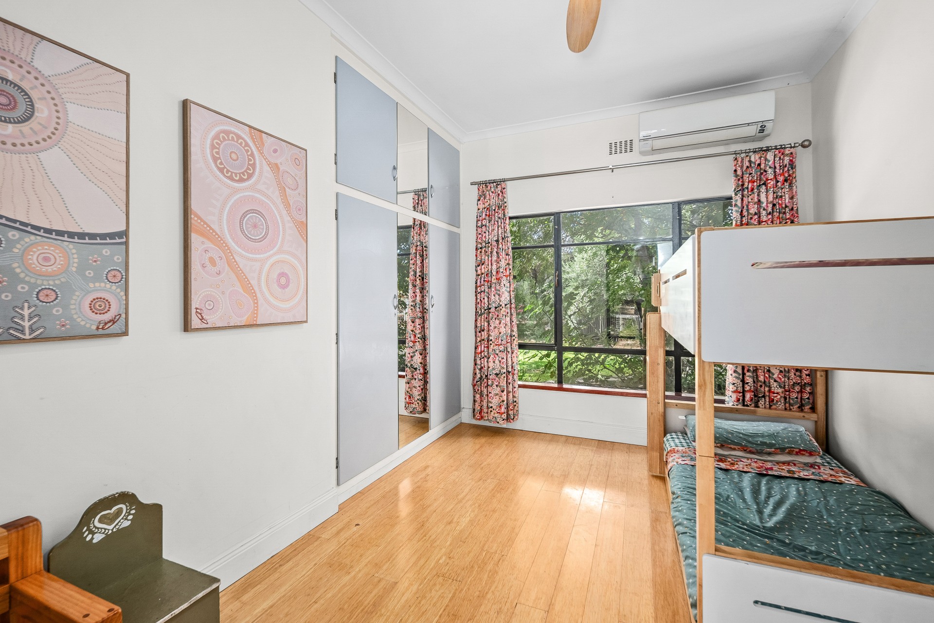 -Three light-filled bedrooms, including a large master bedroom and two bedrooms with built-in wardrobes. All bedrooms feature reverse cycle air conditioning, and ceiling fans. High ceilings and large windows create a light-filled, open atmosphere.