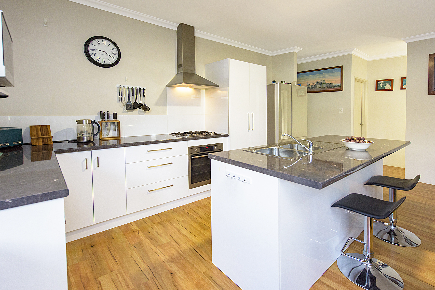 Modern kitchen, gas hotplates/electric oven and lots of cupboard and bench space Master bedroom with full length sliding built in robes