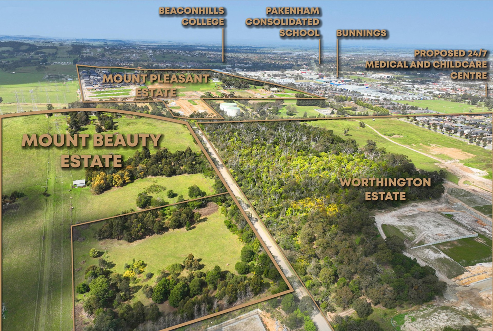 Seize a rare chance to own "Mount Beauty", a hill top 11.92-hectare (29.42-acre) corner estate with two titles-ideal for redevelopment, lifestyle, or investment. Positioned next to the Urban Growth Zone (UGZ) and minutes from Lakeside and Arena shopping precincts, schools, and cafes, this property offers breathtaking 270° uninterrupted views and boundless potential.