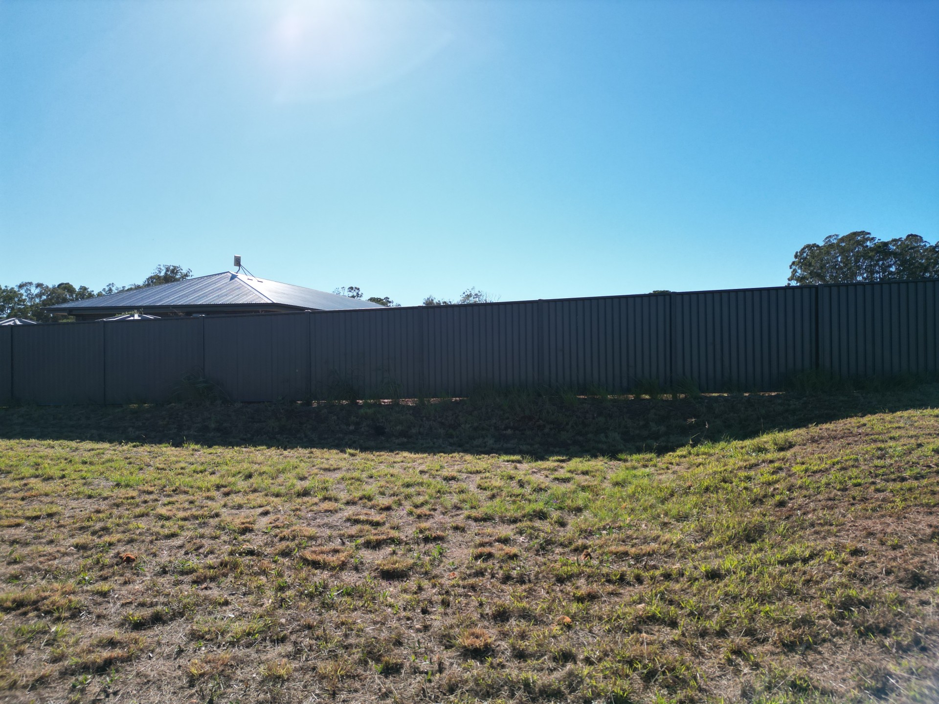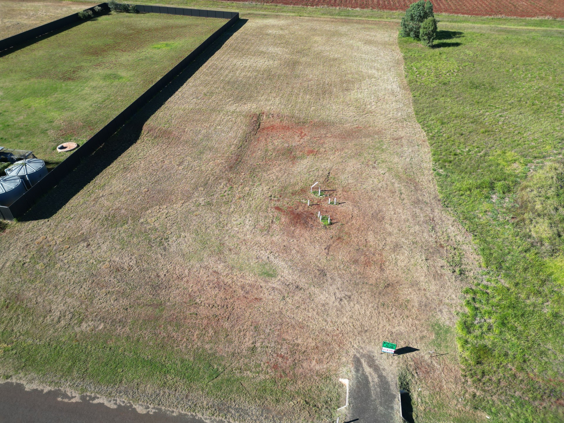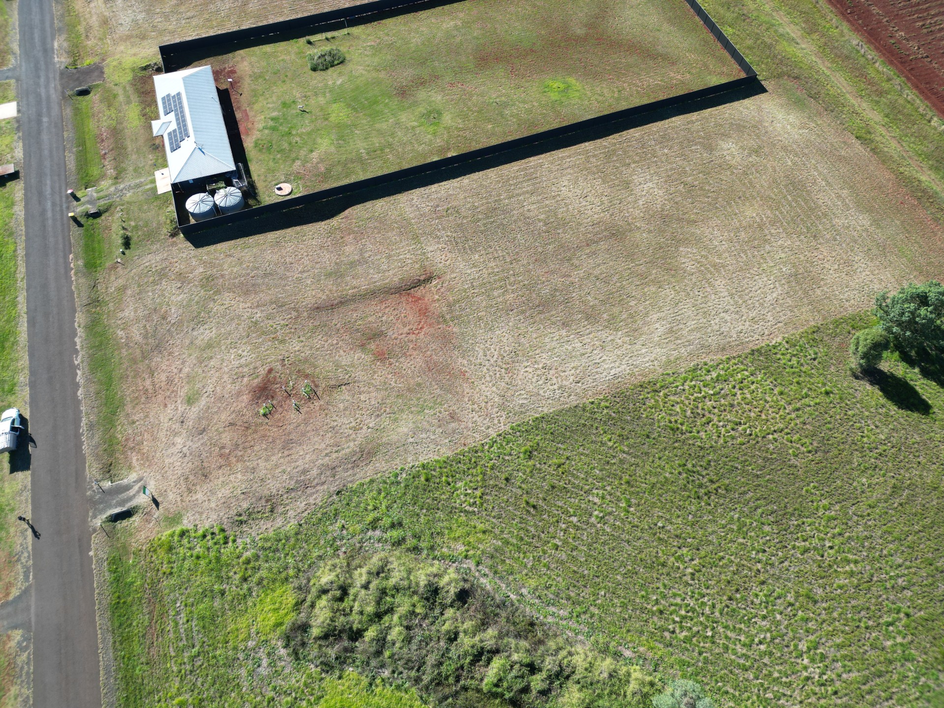 - Existing driveway and partial fencing (one side by neighbor)