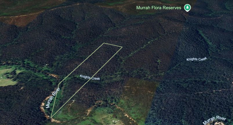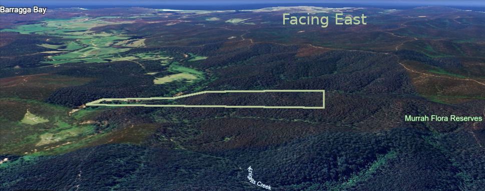 The property runs North-South along a ridgetop with a permanently flowing freshwater river and creek flats at the northern end. There is easy access to the long Murrah River river frontage with its sandy banks and swimming holes. The track in, a no through road, is suitable for two wheel drive vehicles if you drive carefully.