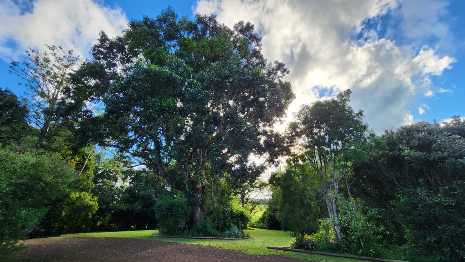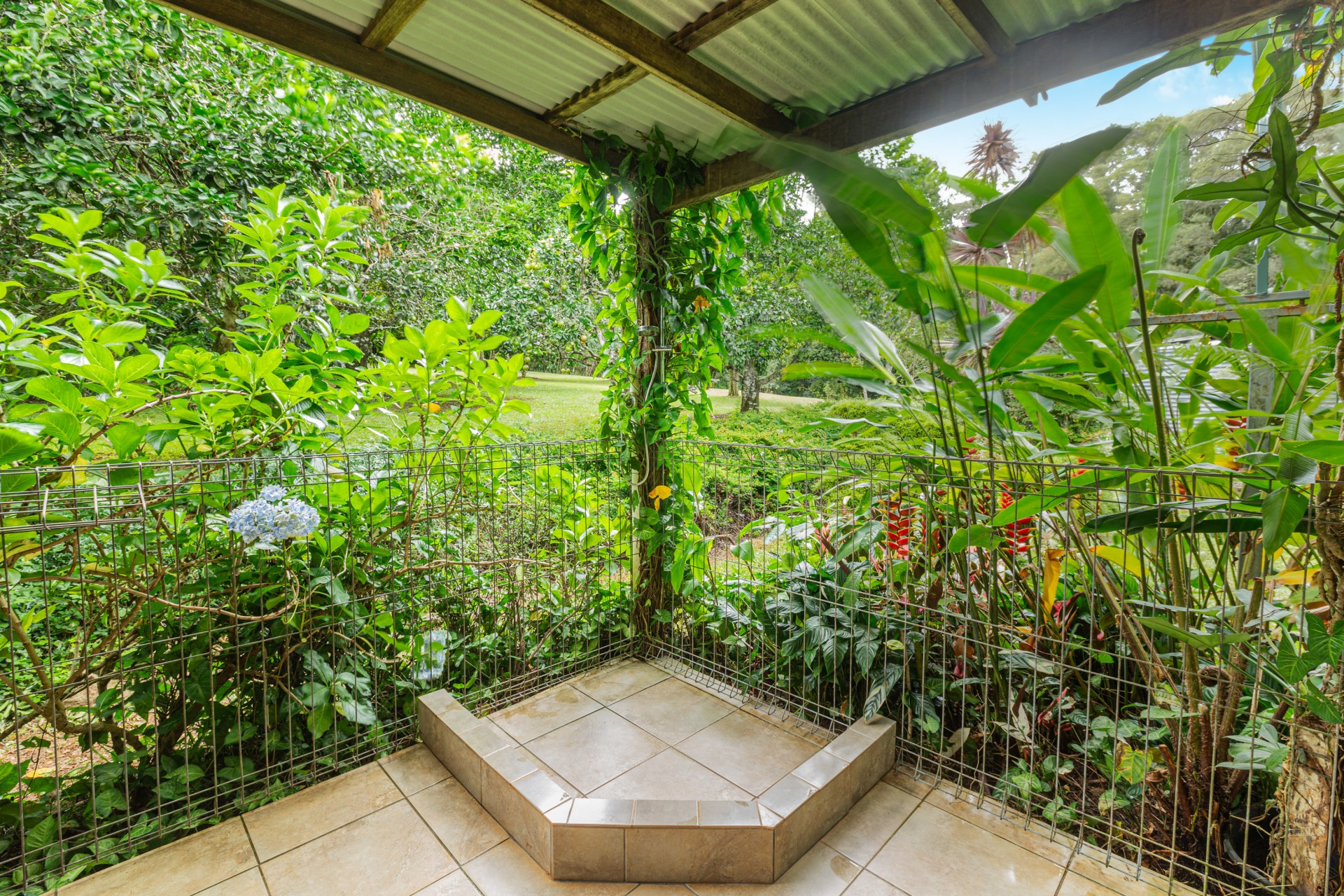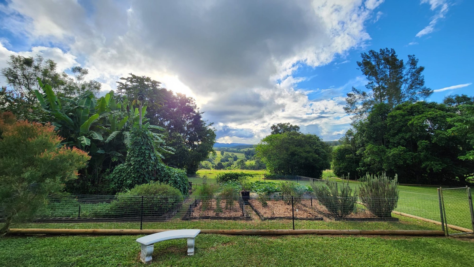A thriving veggie garden produces pumpkins, chokos, raspberries, bananas, herbs, and plenty more, while over 20 varieties of exotic fruit trees flourish, including: