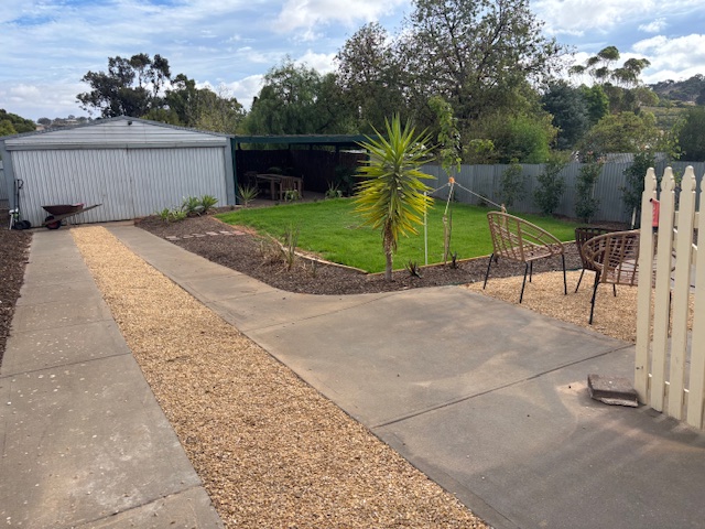 With a side access, through a carport structure, the backyard has views across to the hills, featuring large established trees. (perfect for late afternoon sips at sunset!)