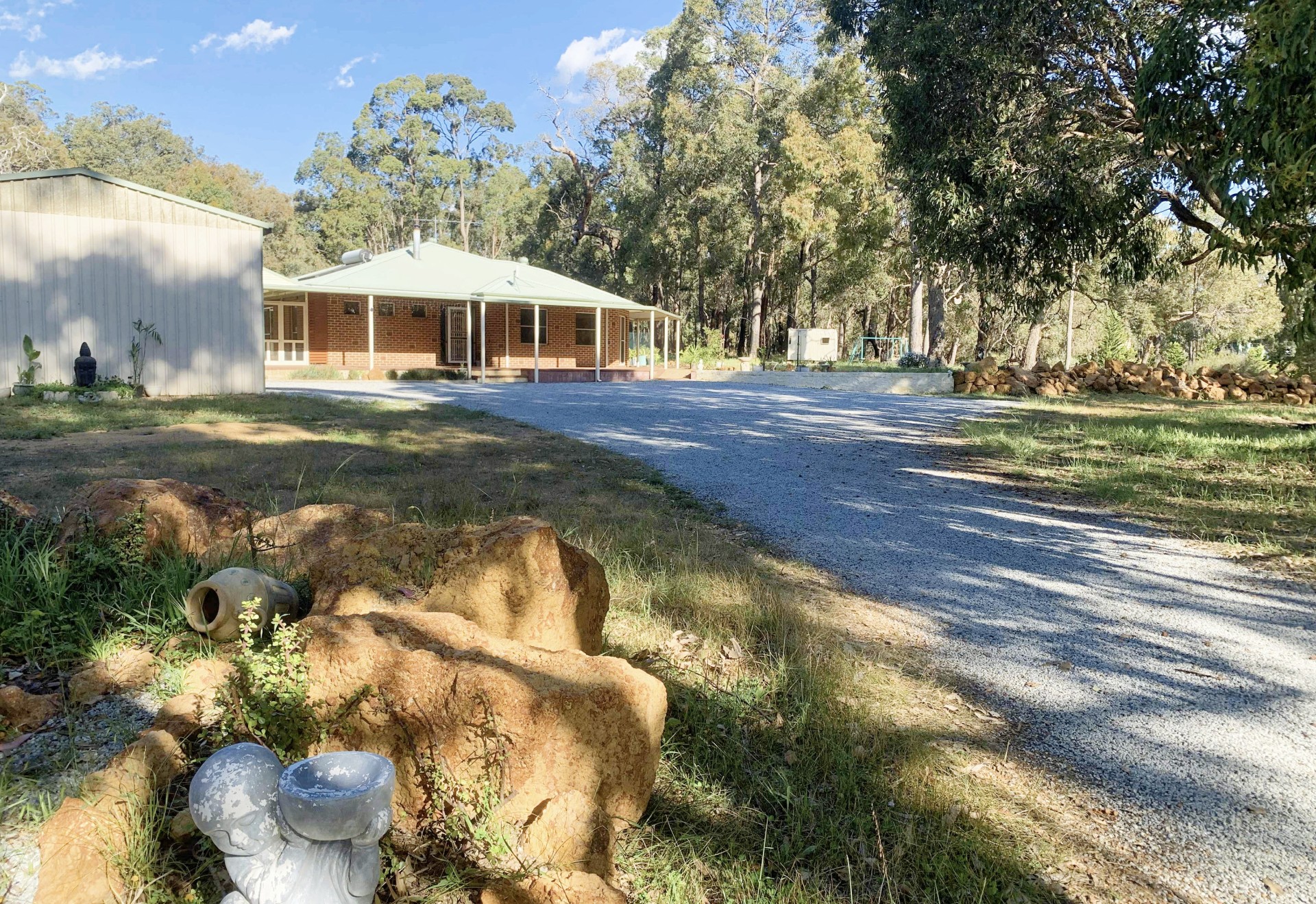 Enter the front gate, along with padlocks for animals and lovely plants, you will see a large 10m long high ceiling shed installed with electric and lights. Infront of the house there are huge flat area for car parking, even big trucks turning around. Along the side of the beautiful garden, outdoor fire pit, rocks wall leading you to the bigger cleared land where your adorable horses could be your neighbors.