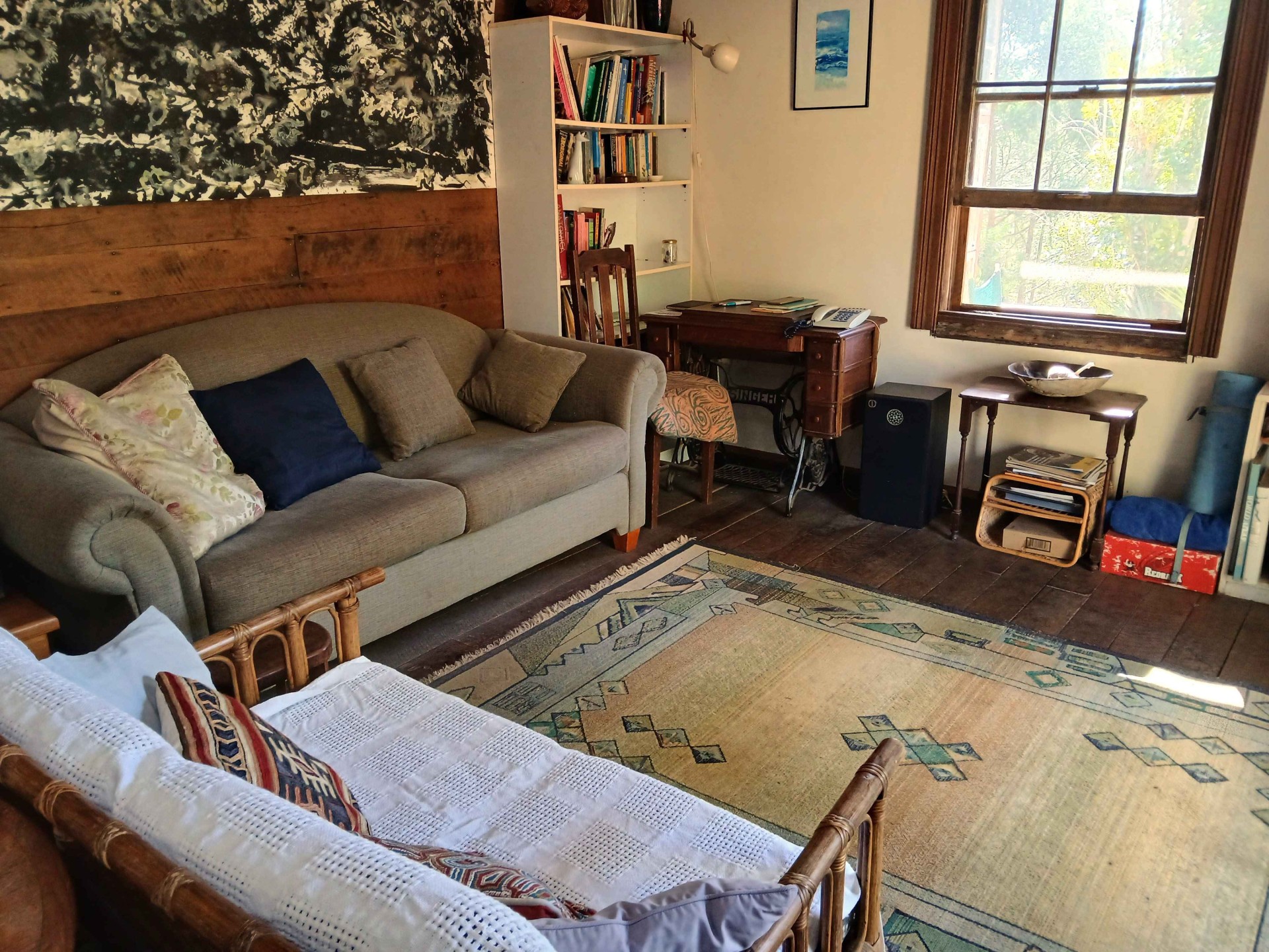 The 130 year-old timber cottage has been restored and extended with off-grid solar power, satellite connections for internet and television, a landline phone connection and a combination solar / wood stove hot water system.