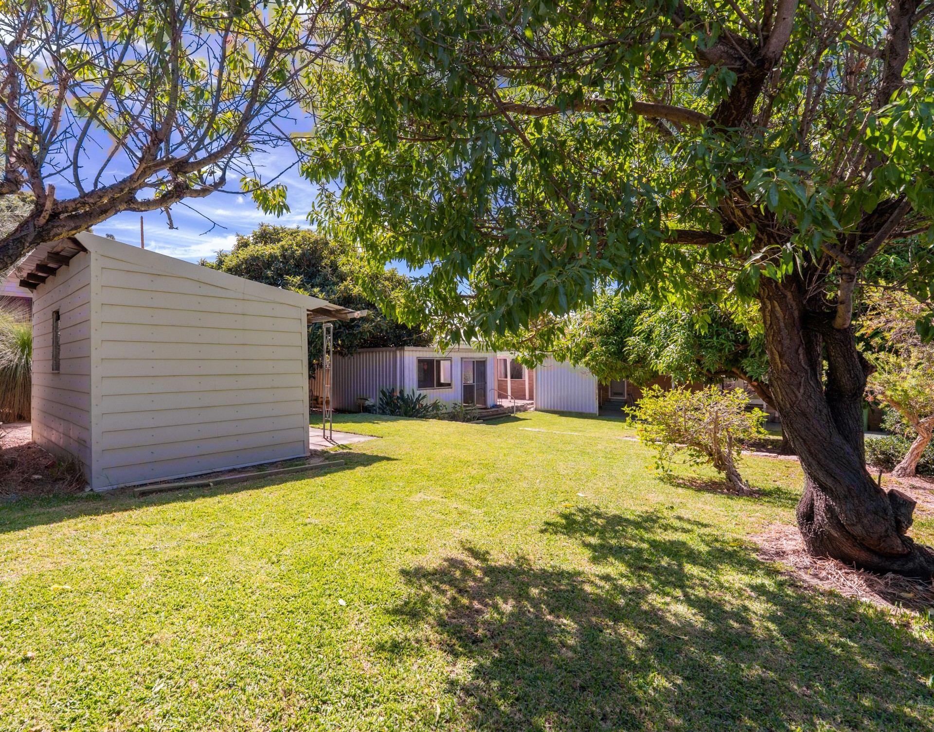 The home sits on spacious established gardens (with fruit and nut trees) providing an idyllic and private setting for your family. The lawns and gardens are reticulated from a clean water bore. The massive enclosed rear yard provides an adventure playground for young children.