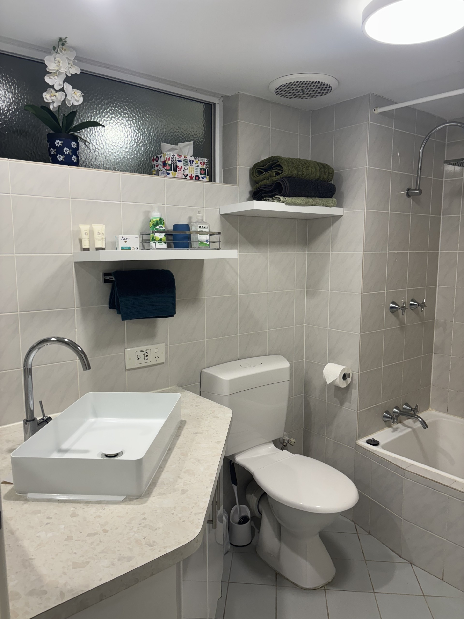 ✔ bathroom has shower over bath