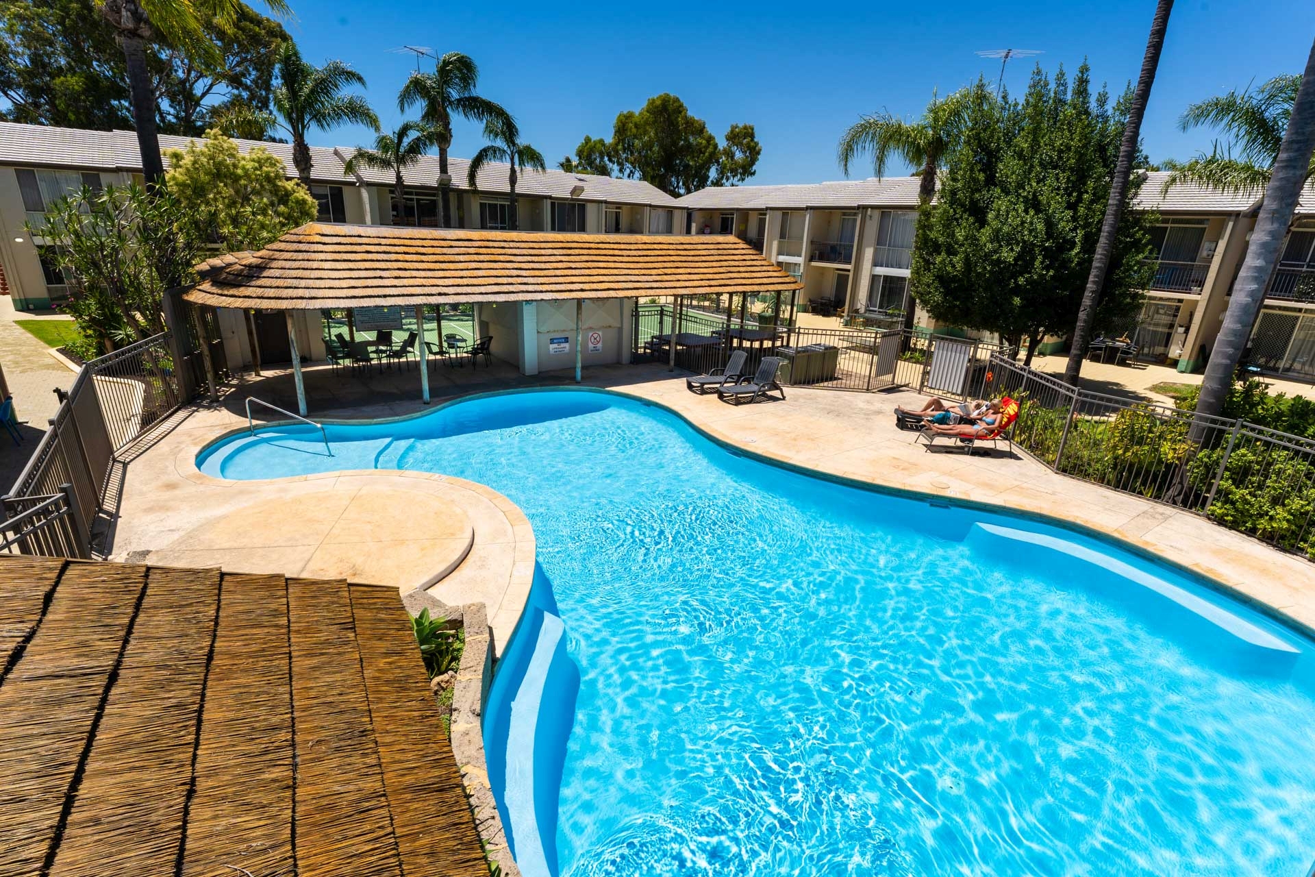 You & your guests enjoy FULL use of the fantastic facilities which include a stunning lagoon-style pool & cabana, security gates, electric BBQs, half-size tennis court, communal laundry, and off-street parking.