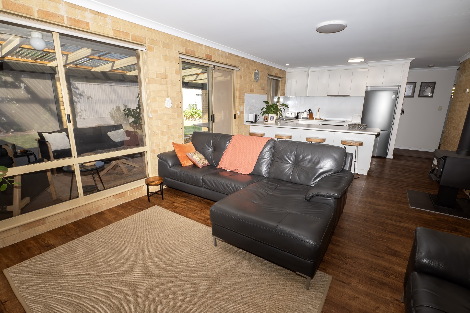 An open-plan lounge and kitchen flow seamlessly onto the outdoor patio, offering a well-designed layout that maximizes space and natural light.
