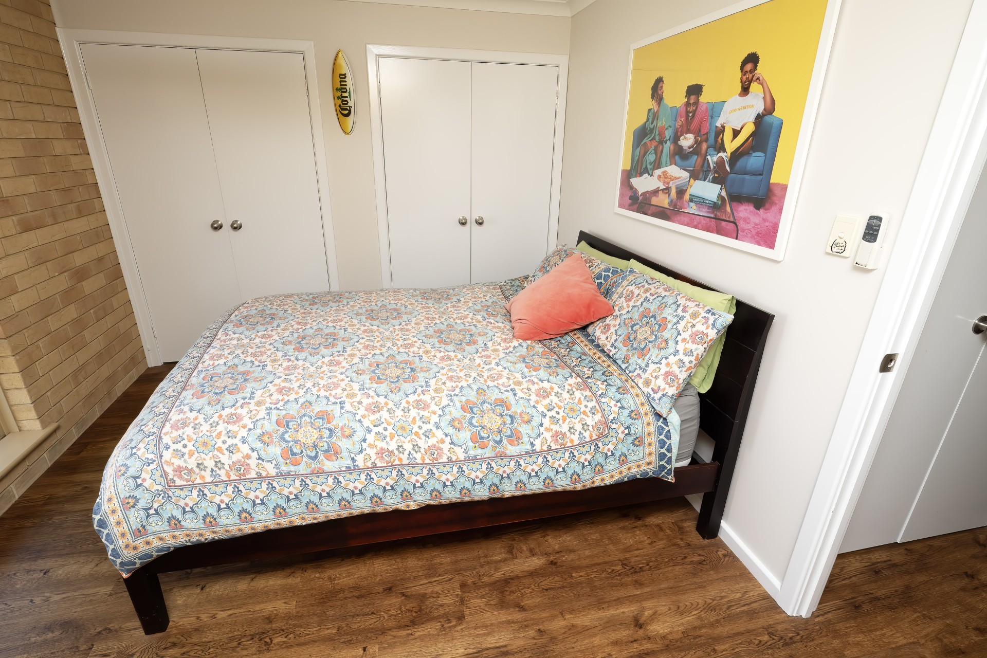 Three spacious bedrooms with built-in cupboards provide convenient storage. Each room is designed with comfort in mind, offering a peaceful retreat.