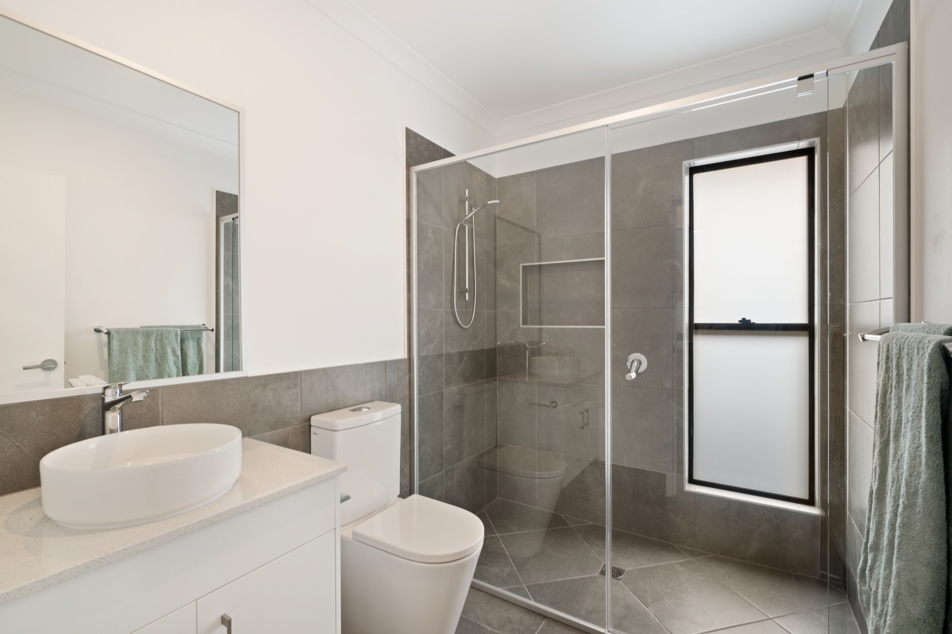 - Stone benchtops throughout