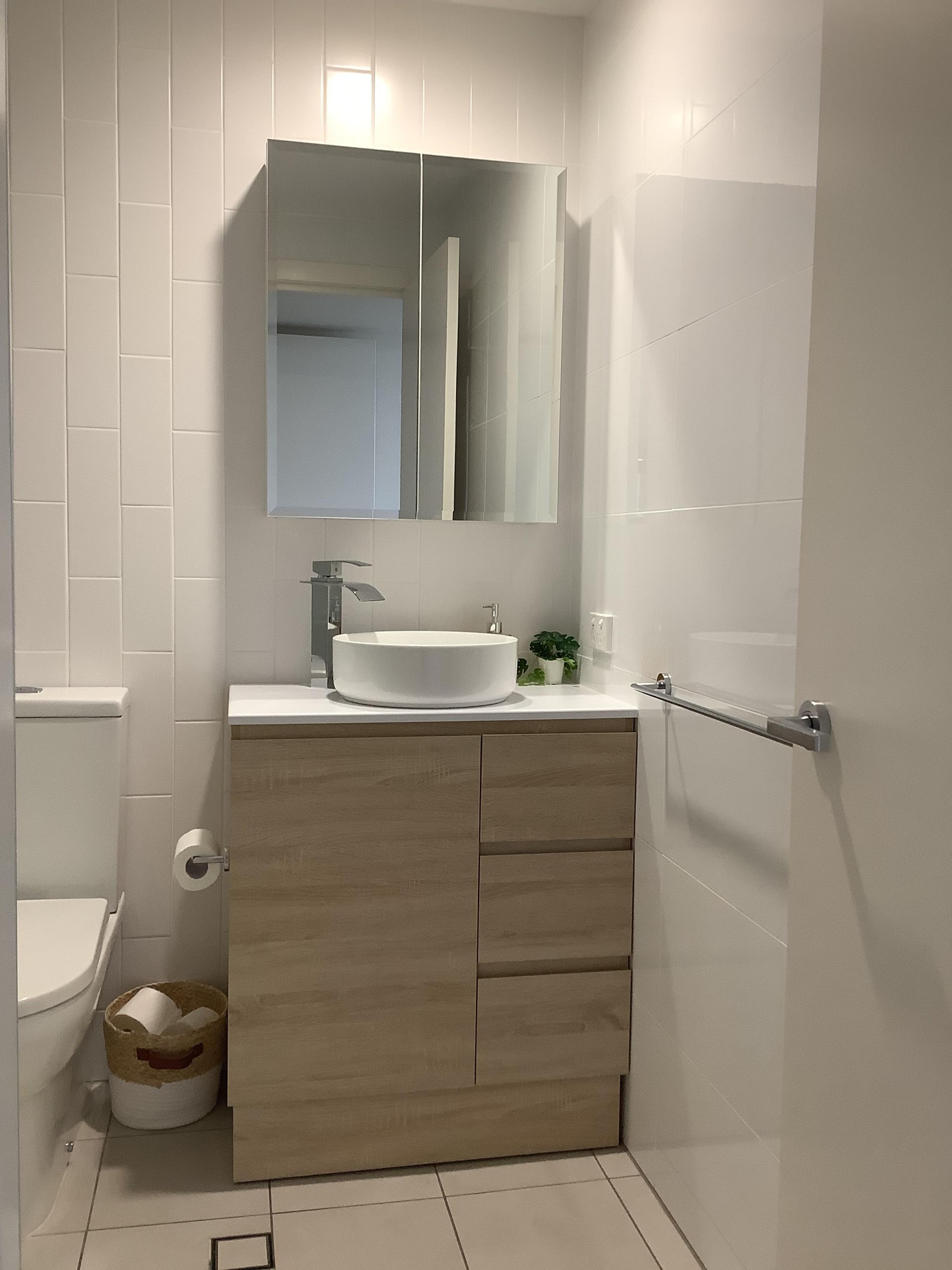 The generously sized carpeted bedroom with floor to ceiling tinted windows opening to the balcony. It also features mirrored built in wardrobe's, air conditioner and ceiling fan. The newly refurbished ensuite has a large shower with stylish vanity and floor to ceiling tiling.