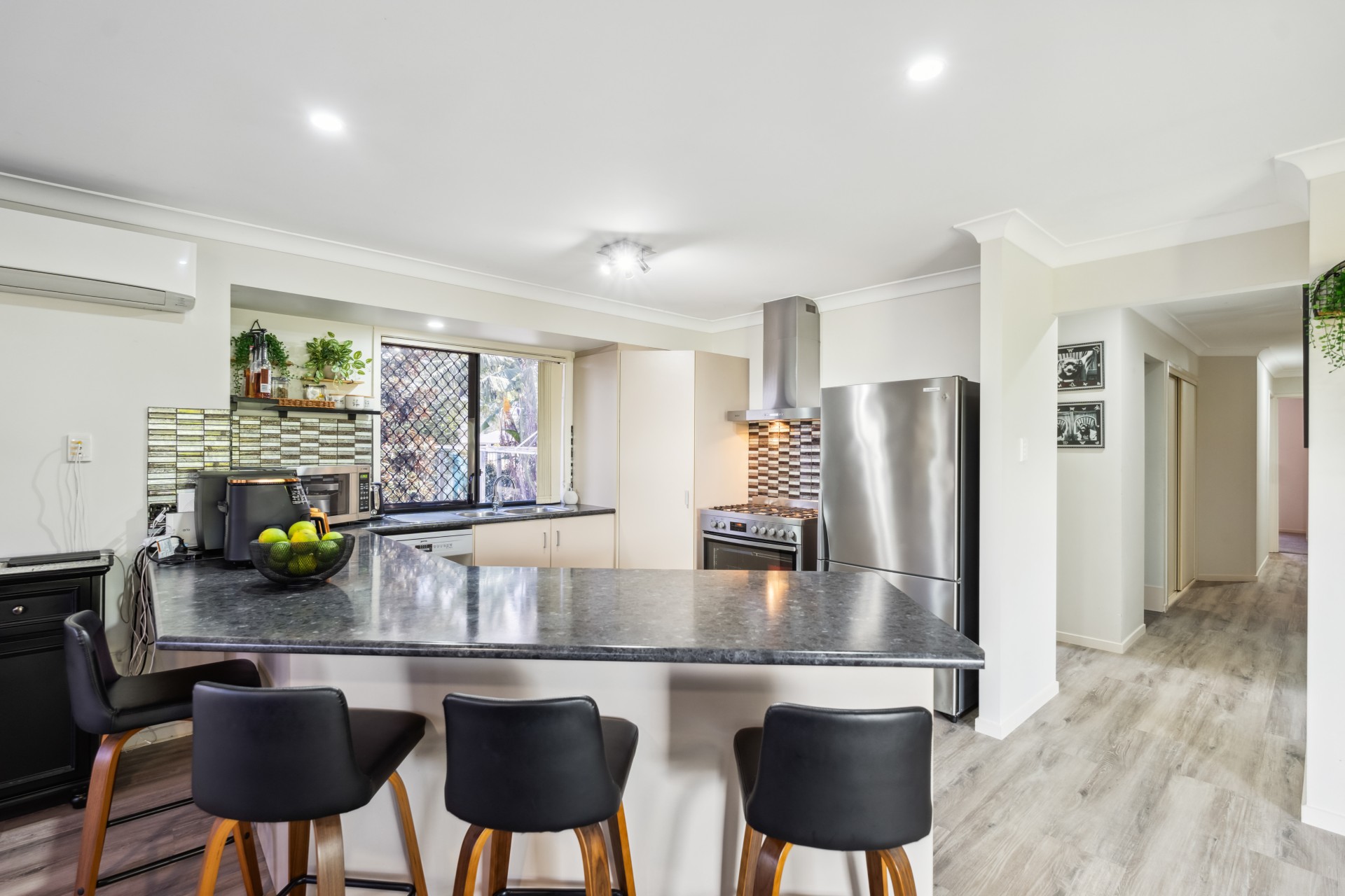- Spacious open plan kitchen and dining which adjoins the outdoor patio area with split system air-conditioning and fan with lovely views looking out the large bay windows