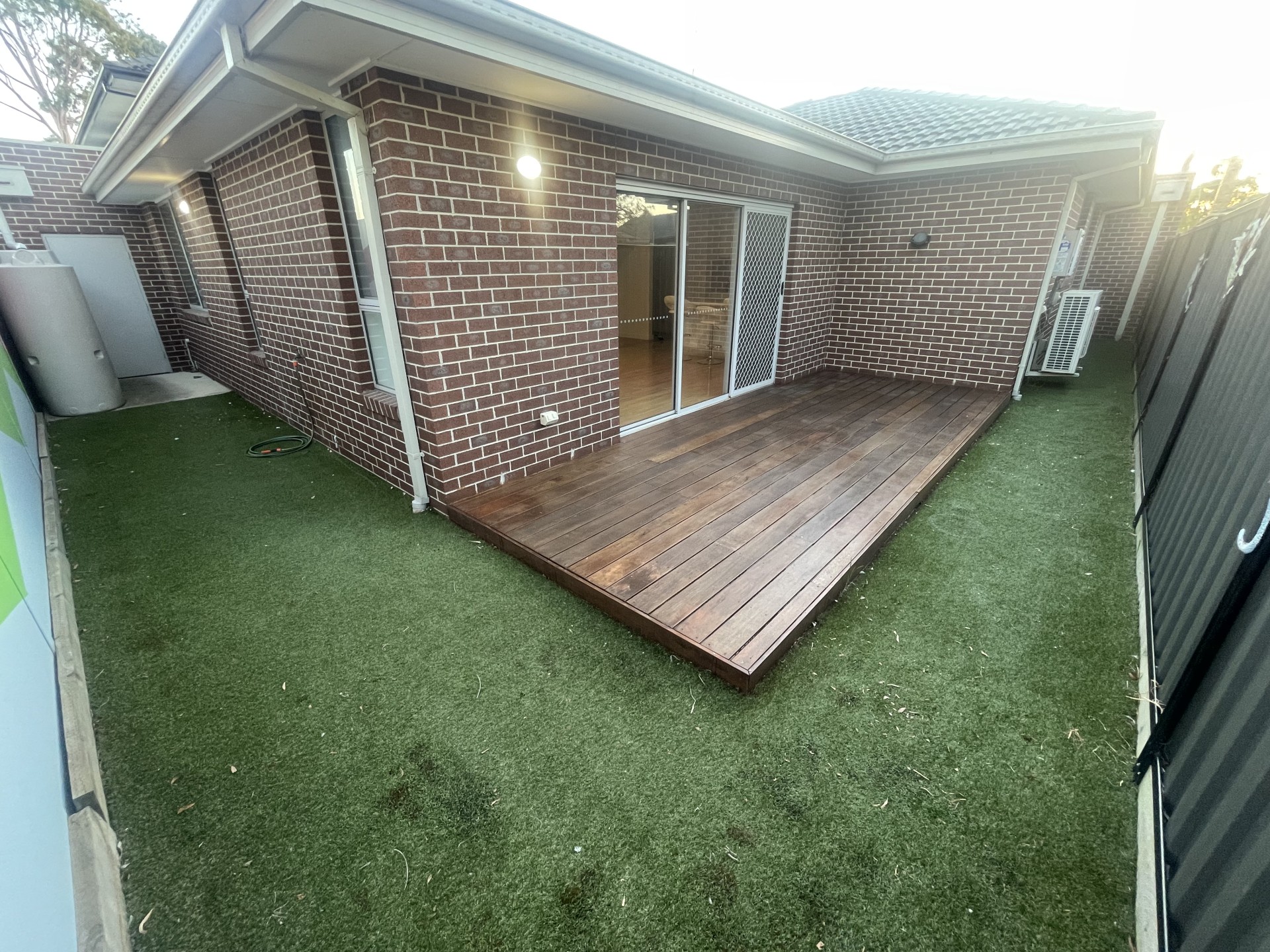 Peacefull backyard space complete with artificial grass and a front row seat to the dusk, cockatoo show in the nearby gumtrees.