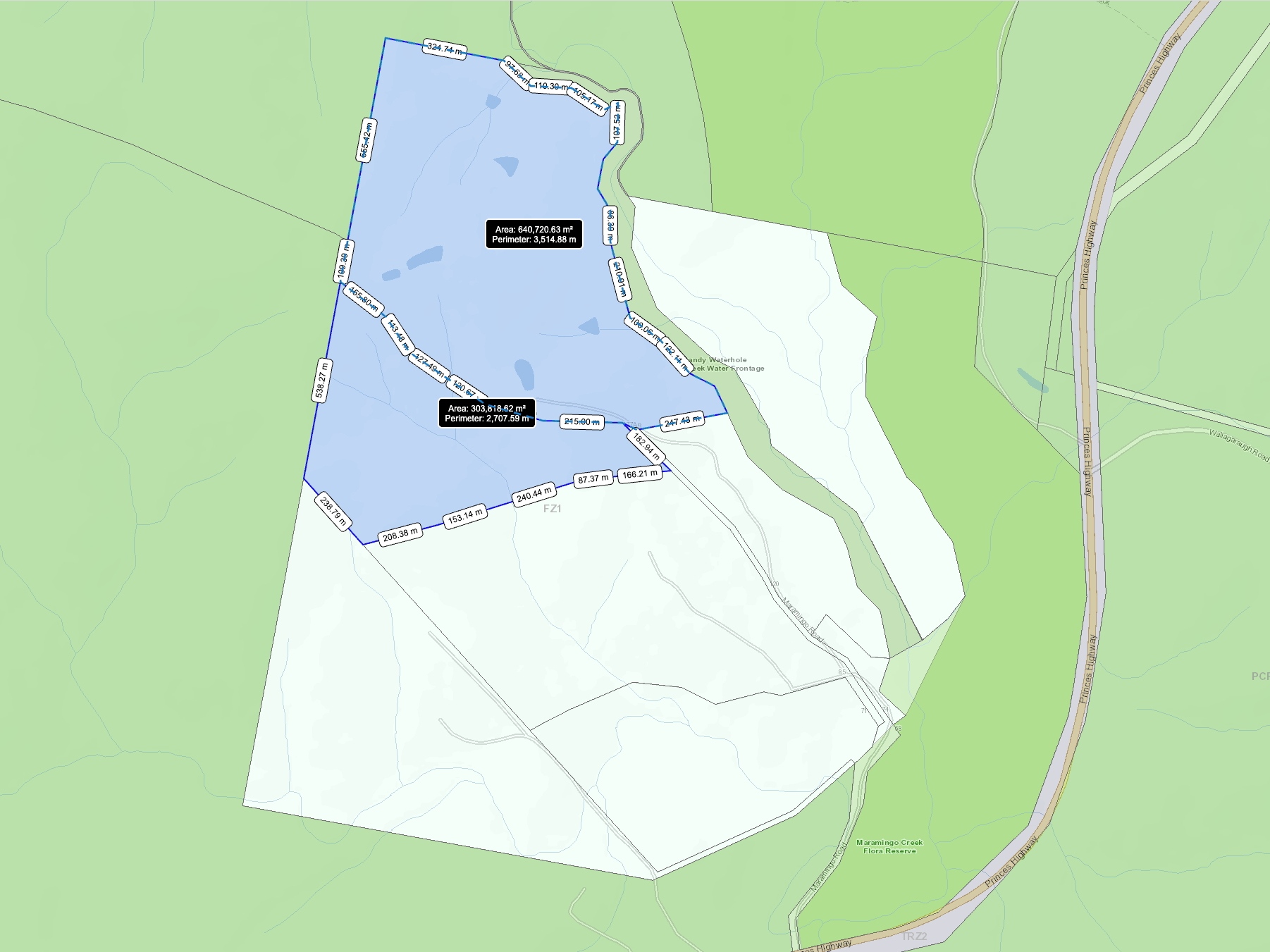 Landholding: 233.38 acres across two titles