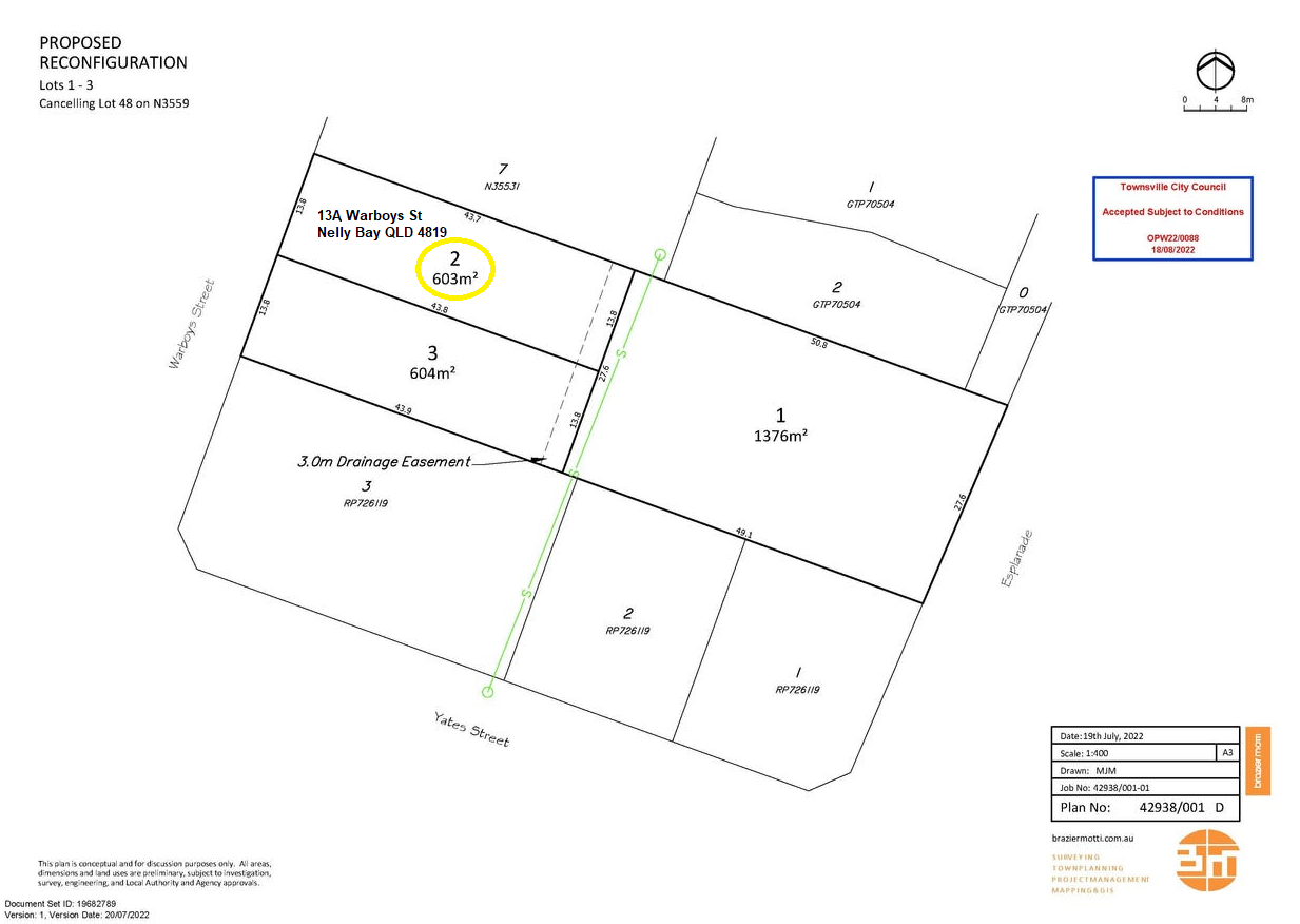603m2 of affordable vacant lot is just one block back from The Esplanade's palm fringed sandy Nelly Bay beach with kids play area, shady grassed parkland with ocean and mainland views, see main photo and dream.