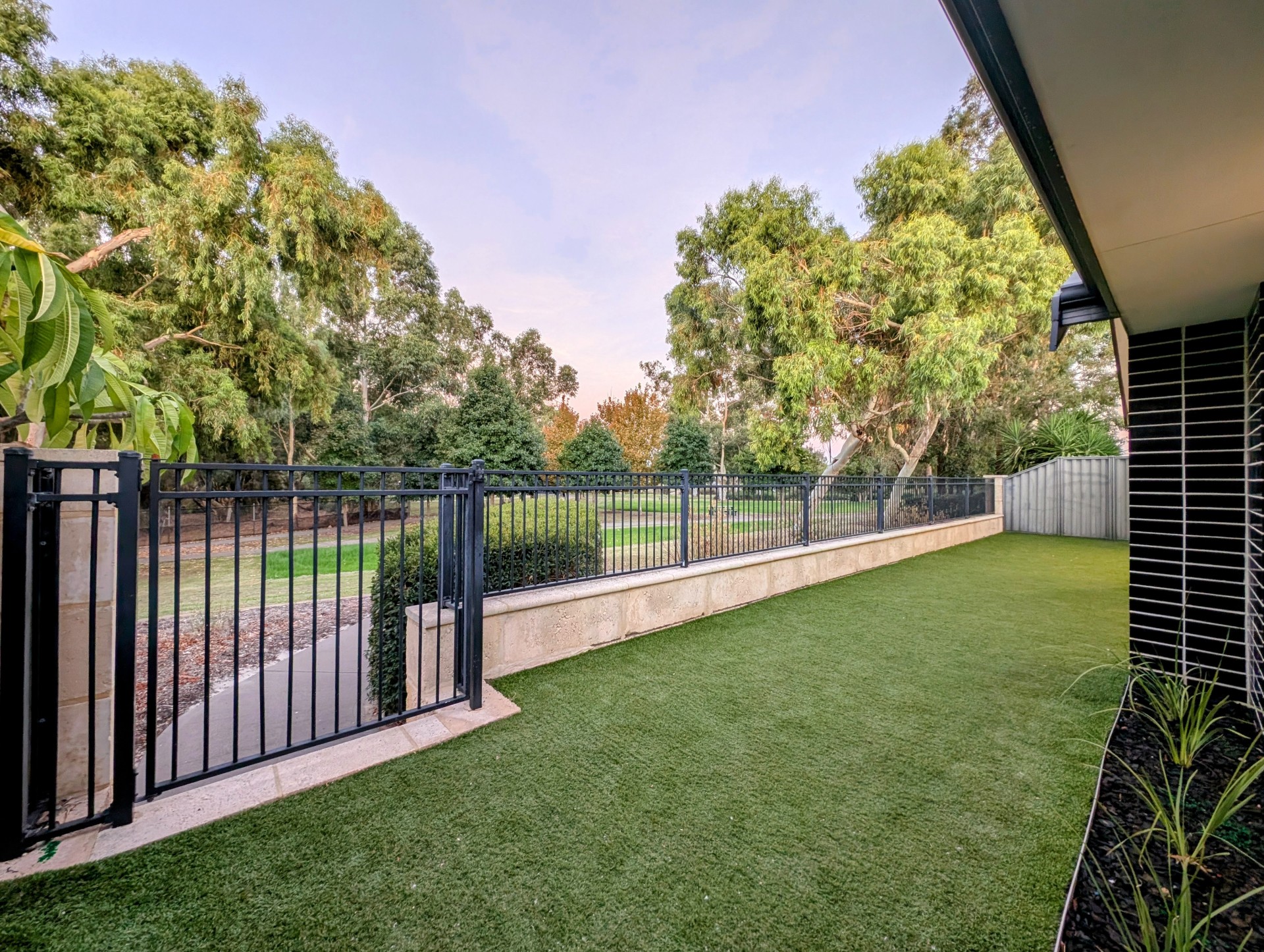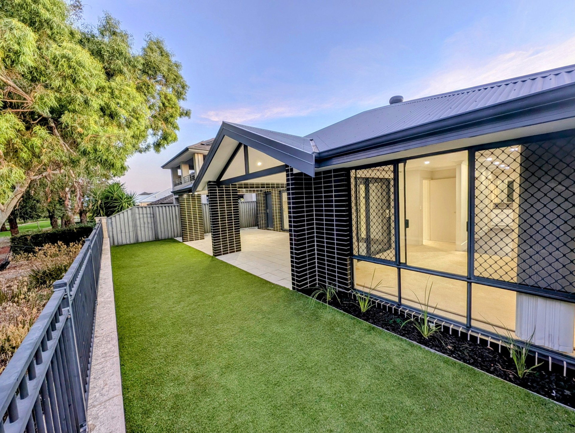 The open plan living, dining with Porcelain tiled floors, is vaulted with a Raked ceiling that extends out to the alfresco, surrounded with Chilling Black - Burlesque face bricks overlooking Aveley Central Lakes Park accessed directly from your rear gate that provides access to two fenced dog parks a playground, skateboard park, BBQs and Gazebos to enjoy at any time located a short walk away but not too close to infringe on your privacy.