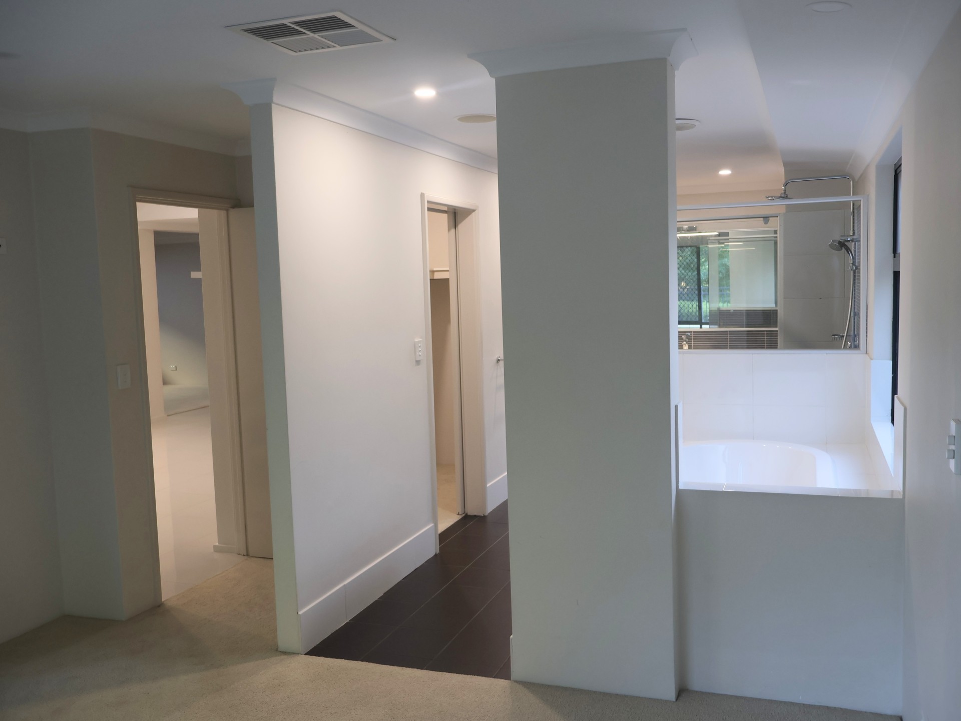 A large ensuite directly of the main bedroom with a Multiform 1800 Spa-Bath, 3 to 4-person shower, large vanity with 2 hand basins and an enclosed 2nd w/c and a walk-in robe, all off the large Main Bedroom that has views directly to the park and the alfresco area with uninterrupted views that overlooks the park.