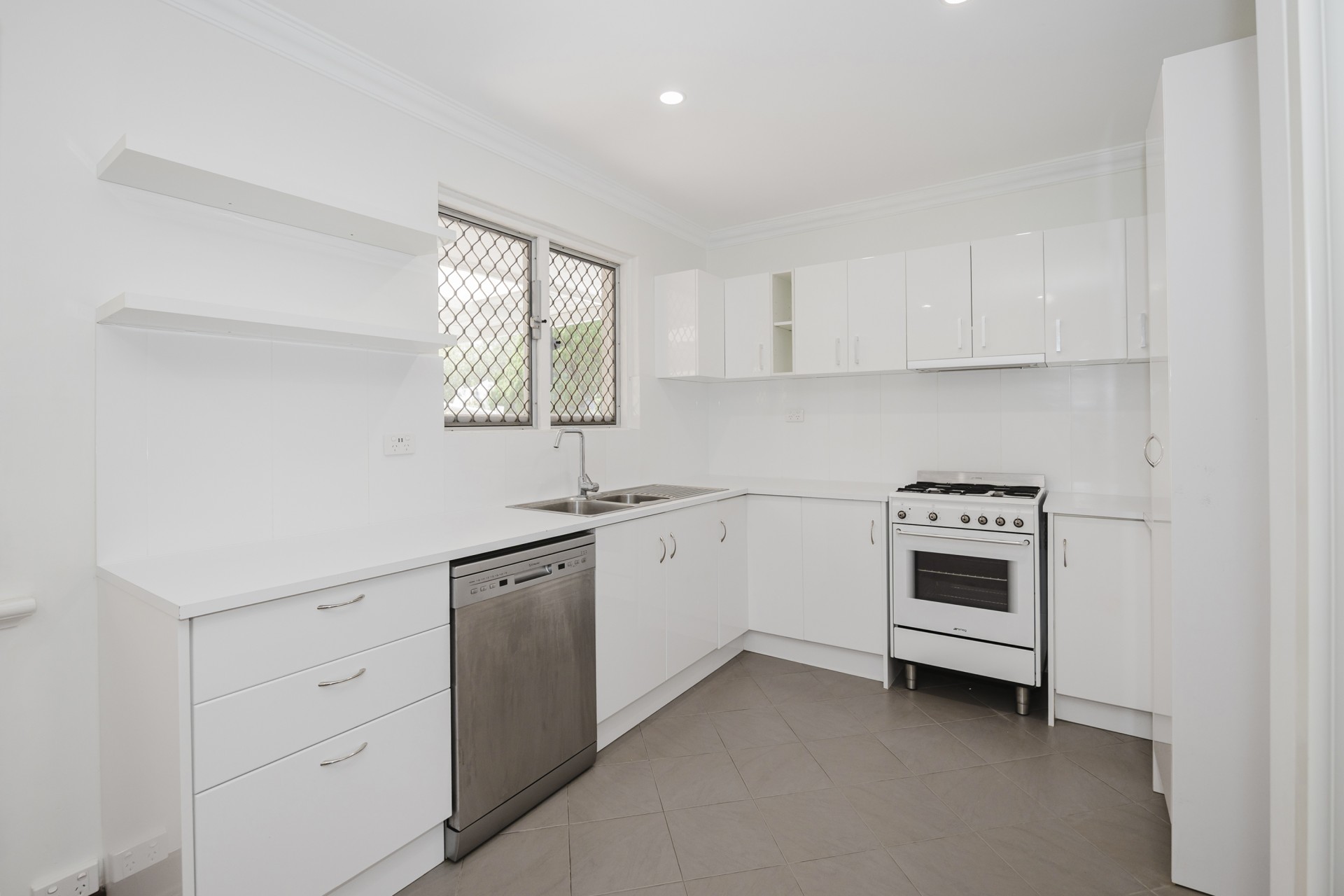 Open plan kitchen, dining and family space with delightfully renovated kitchen